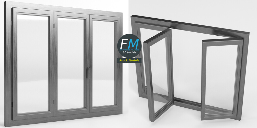 3 panels window 3D Model. 8 individual objects (frame, panels, glasses, handle; so, you can actually rotate or even animate them --- see preview images), sharing 2 non overlapping UV Layout maps, Materials (frames, glasses) and PBR Textures sets. Production-ready 3D Model, with PBR materials, textures, non overlapping UV Layout map provided in the package.