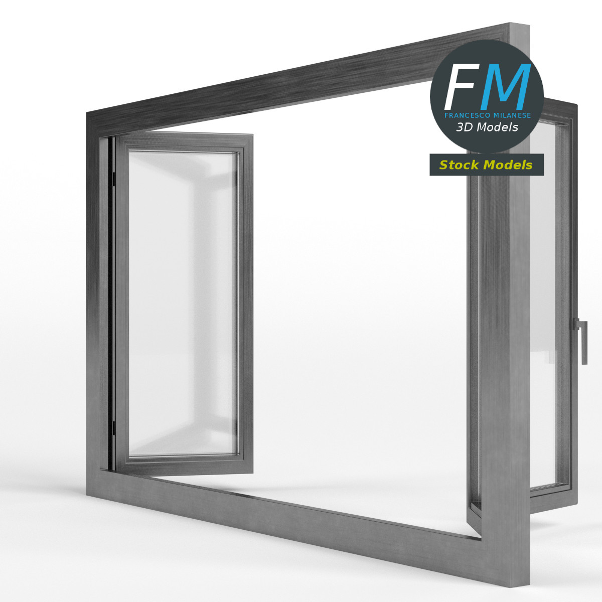 A 4 panels window 3D Model; 10 individual objects (frame, 4 panels, 4 glasses, handle; so, you can easily rotate or even animate them), sharing the same non overlapping UV Layout map, Material and PBR Textures set. Production-ready 3D Model, with PBR materials, textures, non overlapping UV Layout map provided in the package.