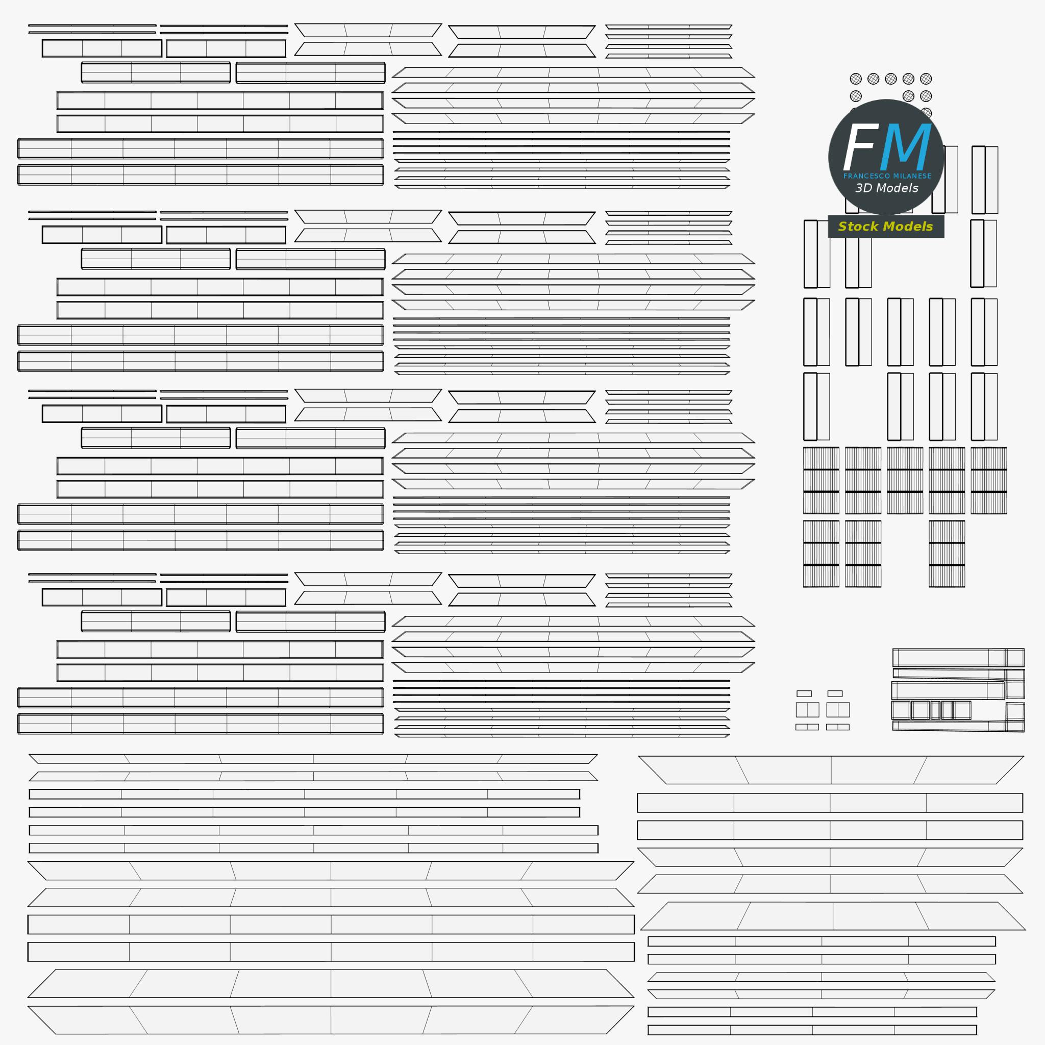 10 Objects (meshes), 2 PBR Materials, UV unwrapped (non overlapping UV Layout map provided in the package); UV-mapped Textures.