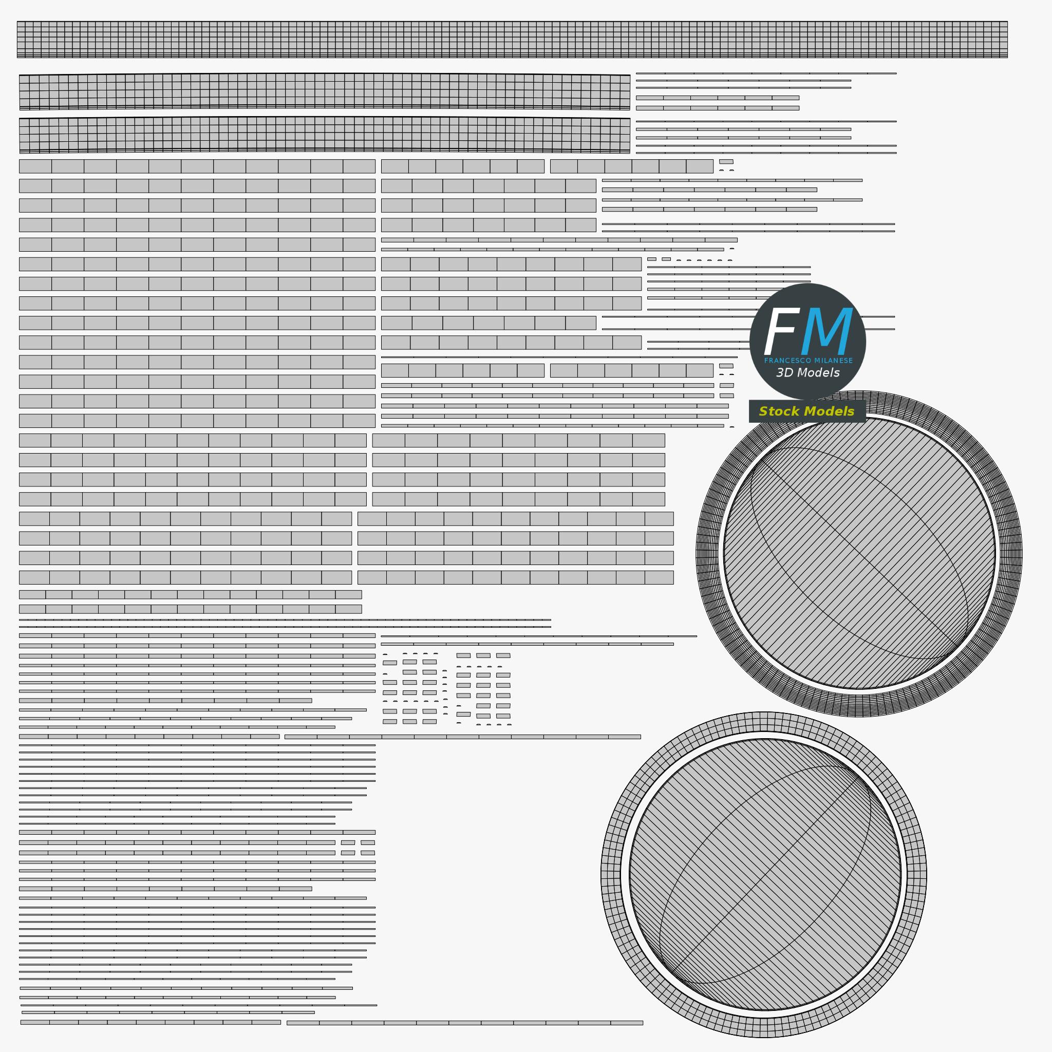 Easily customizable: UV unwrapped geometries, so you can create new Textures (or modify the existing ones) using the UV Layout maps provided in the package (as png with alpha).
