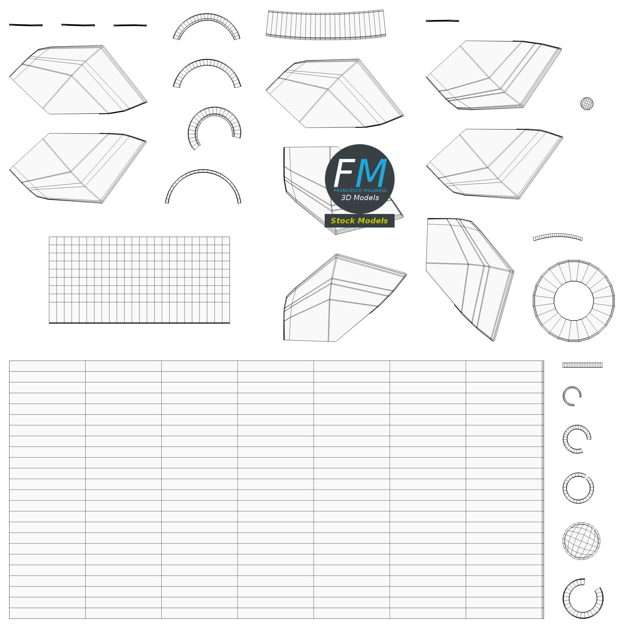 Easily customizable: UV unwrapped geometries, so you can create new Textures (or modify the existing ones) using the UV Layout maps provided in the package (as png with alpha).