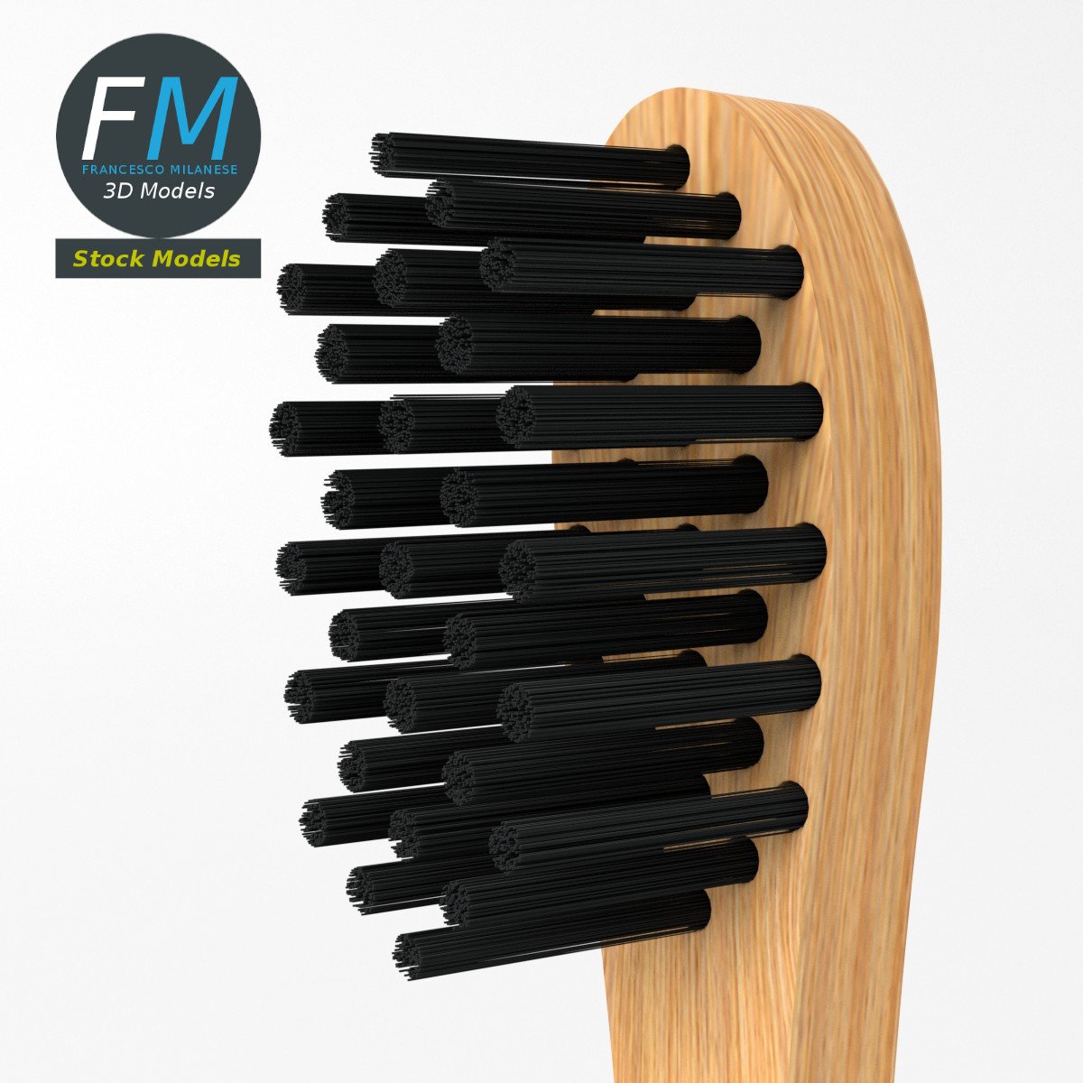 Bamboo toothbrush 3D Model. 2 individual objects (handle, bristle), each one with its own non overlapping UV Layout map, Material and PBR Textures set. Production-ready 3D Model, with PBR materials, textures, non overlapping UV Layout map provided in the package.