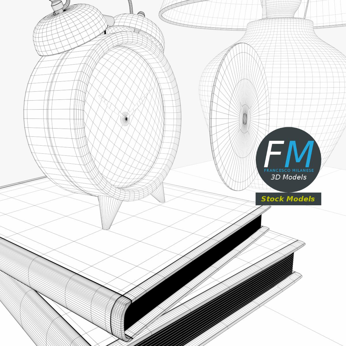 fm3d, game ready, vr, ar, bedside, table, desk, furniture, furnishing, alarm clock, lamp, abat-jour, book, interior, design, decorative, architectural visualization