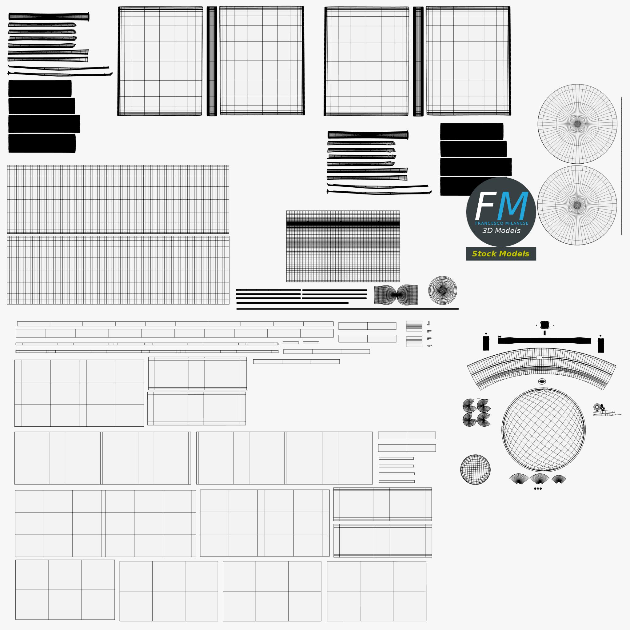 6 Objects (meshes), 2 PBR Materials, UV unwrapped (non overlapping UV Layout map provided in the package); UV-mapped Textures.