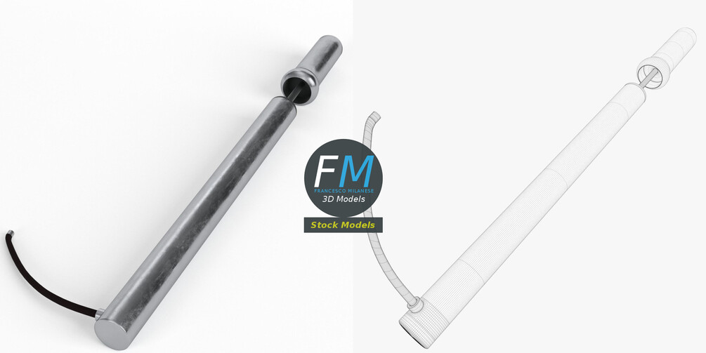 Bicycle pump 3D Model. 3 individual objects (fixed part, moving part, extension cord) sharing the same non overlapping UV Layout map, Material and PBR Textures set. Production-ready 3D Model, with PBR materials, textures, non overlapping UV Layout map provided in the package.