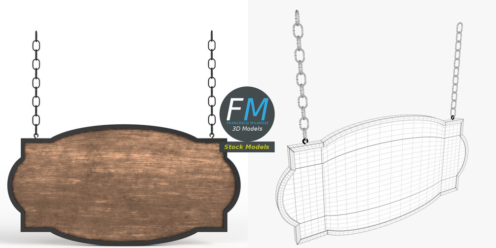 Blank hanging sign 3D Model. Production-ready 3D Model, with PBR materials, textures, non overlapping UV Layout map provided in the package.
