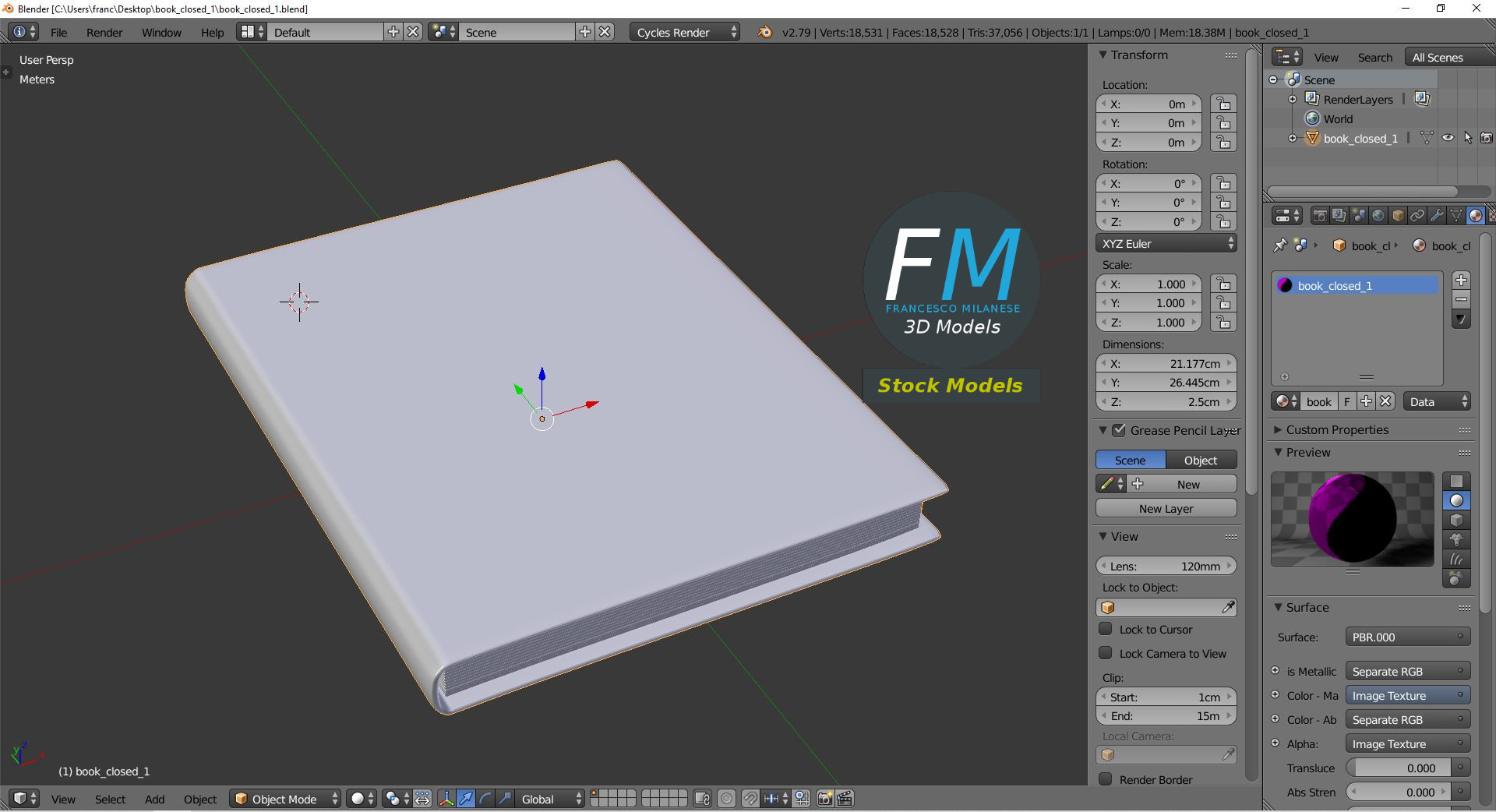 Book closed 3D Model, nr. 1 in my collection. Production-ready 3D Model, with PBR materials, textures, non overlapping UV Layout map provided in the package.