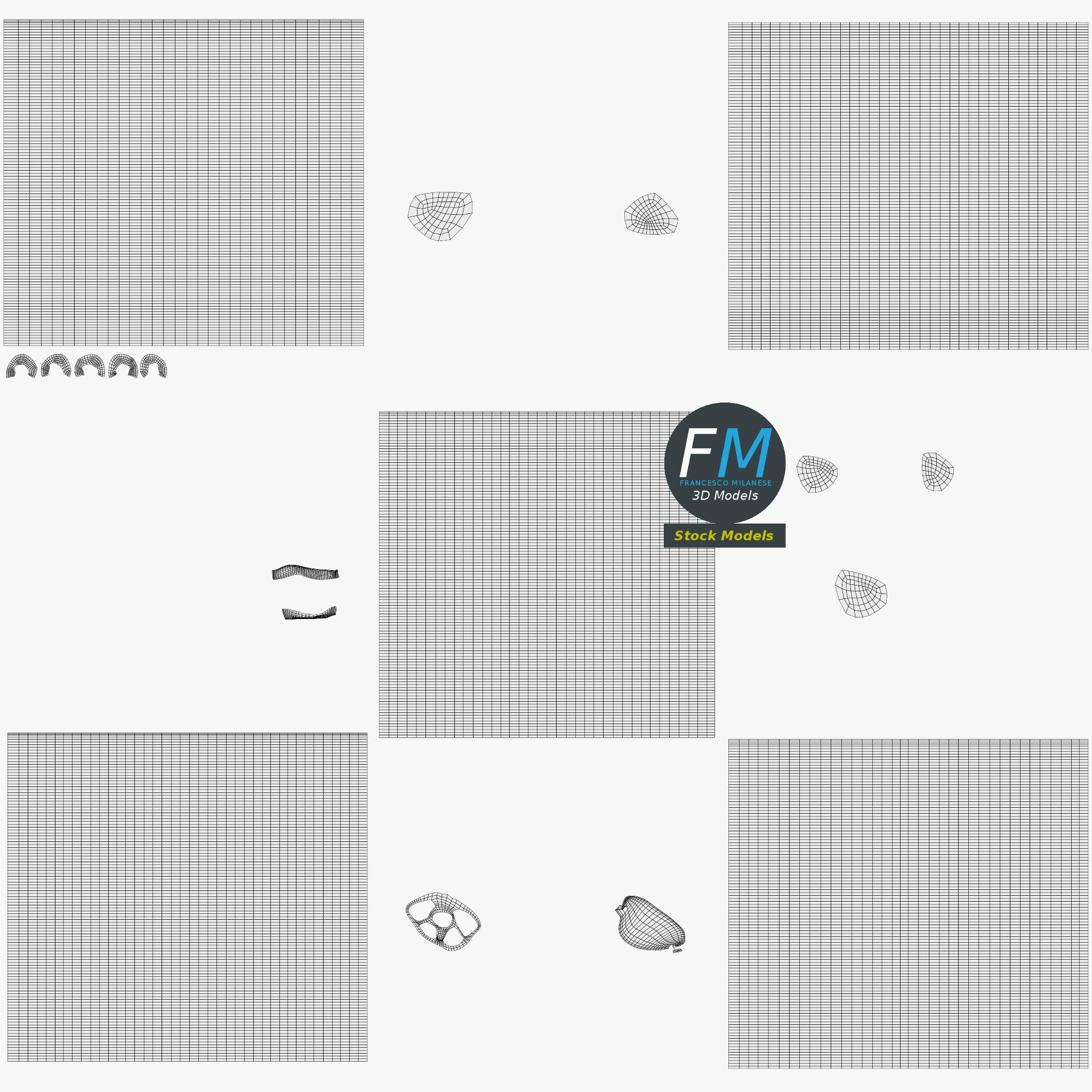 Easily customizable: UV unwrapped geometries; UV Layout maps provided in the package as png with alpha images.