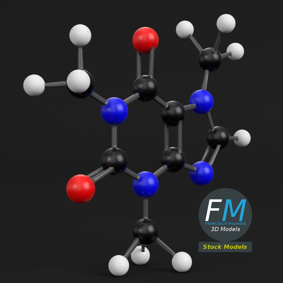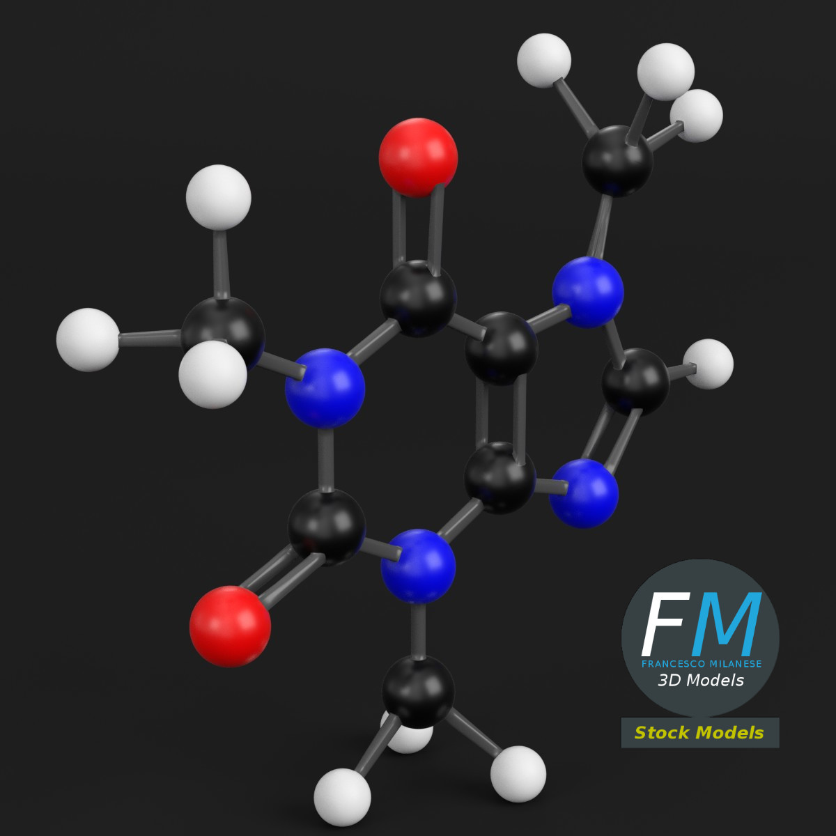 Caffeine molecule 3D Model. Production-ready 3D Model, with PBR materials, textures, non overlapping UV Layout map provided in the package.