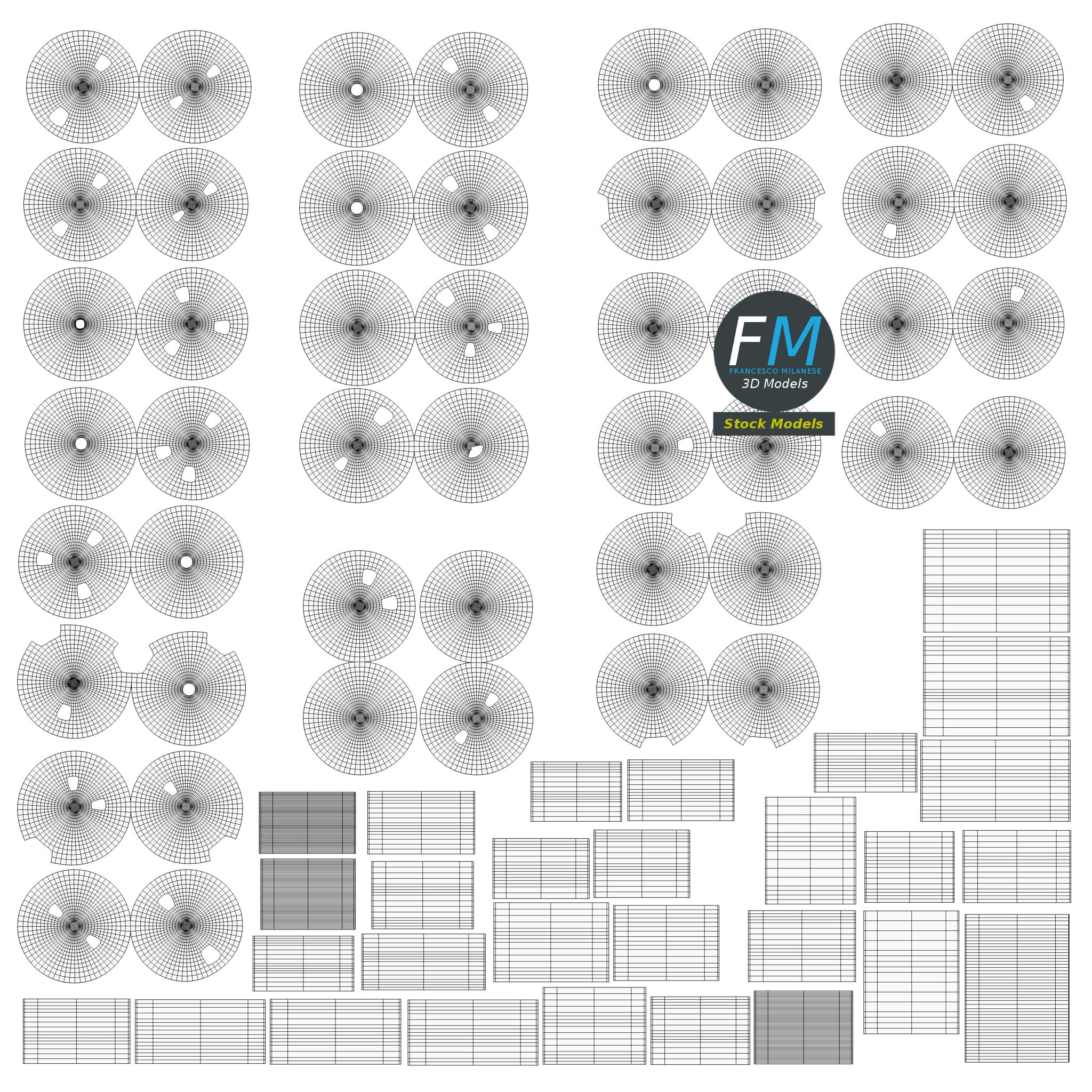 Easily customizable: UV unwrapped geometries, so you can create new Textures (or modify the existing ones) using the UV Layout maps provided in the package (as png with alpha).
