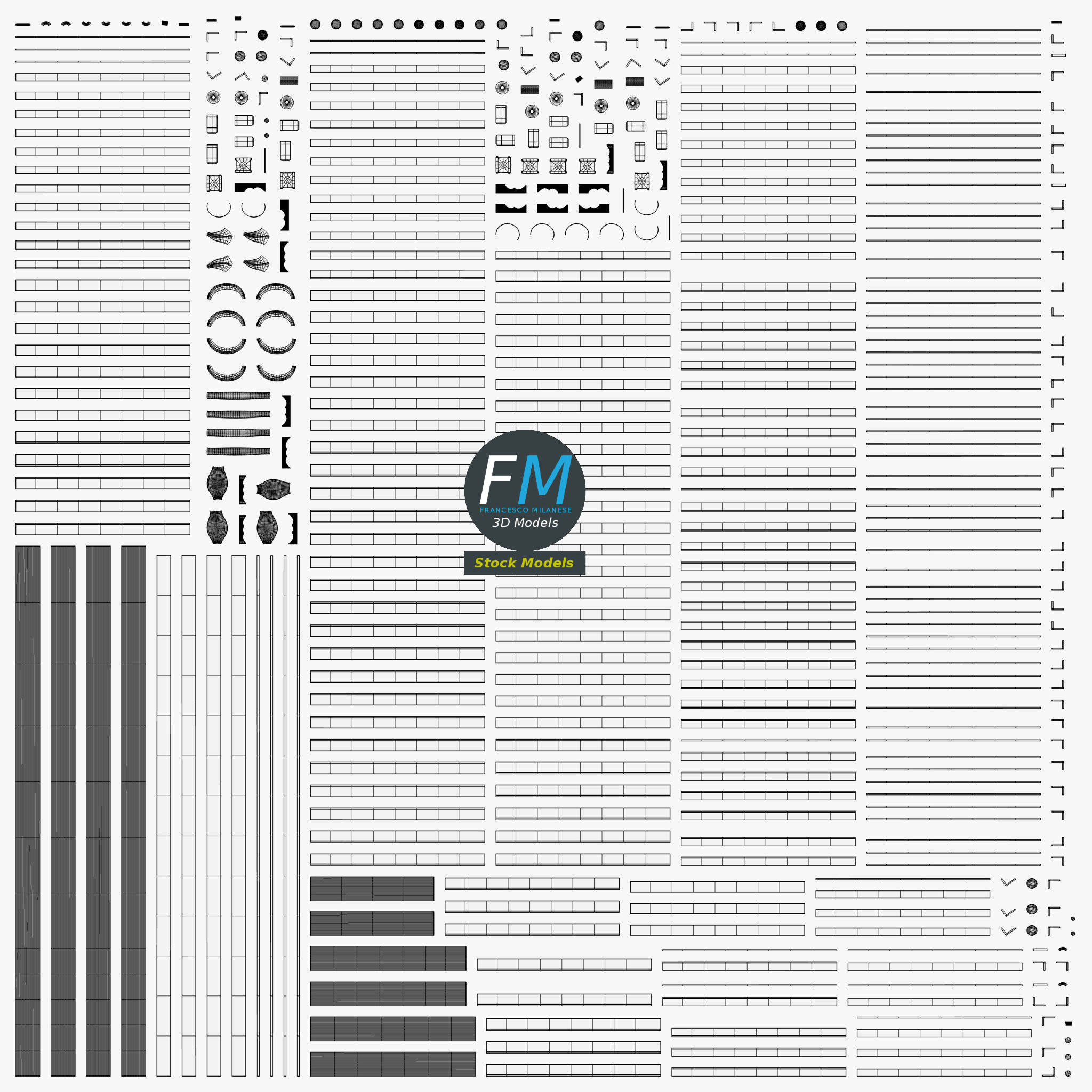 Easily customizable: UV unwrapped geometries, so you can create new Textures (or modify the existing ones) using the UV Layout maps provided in the package (as png with alpha).