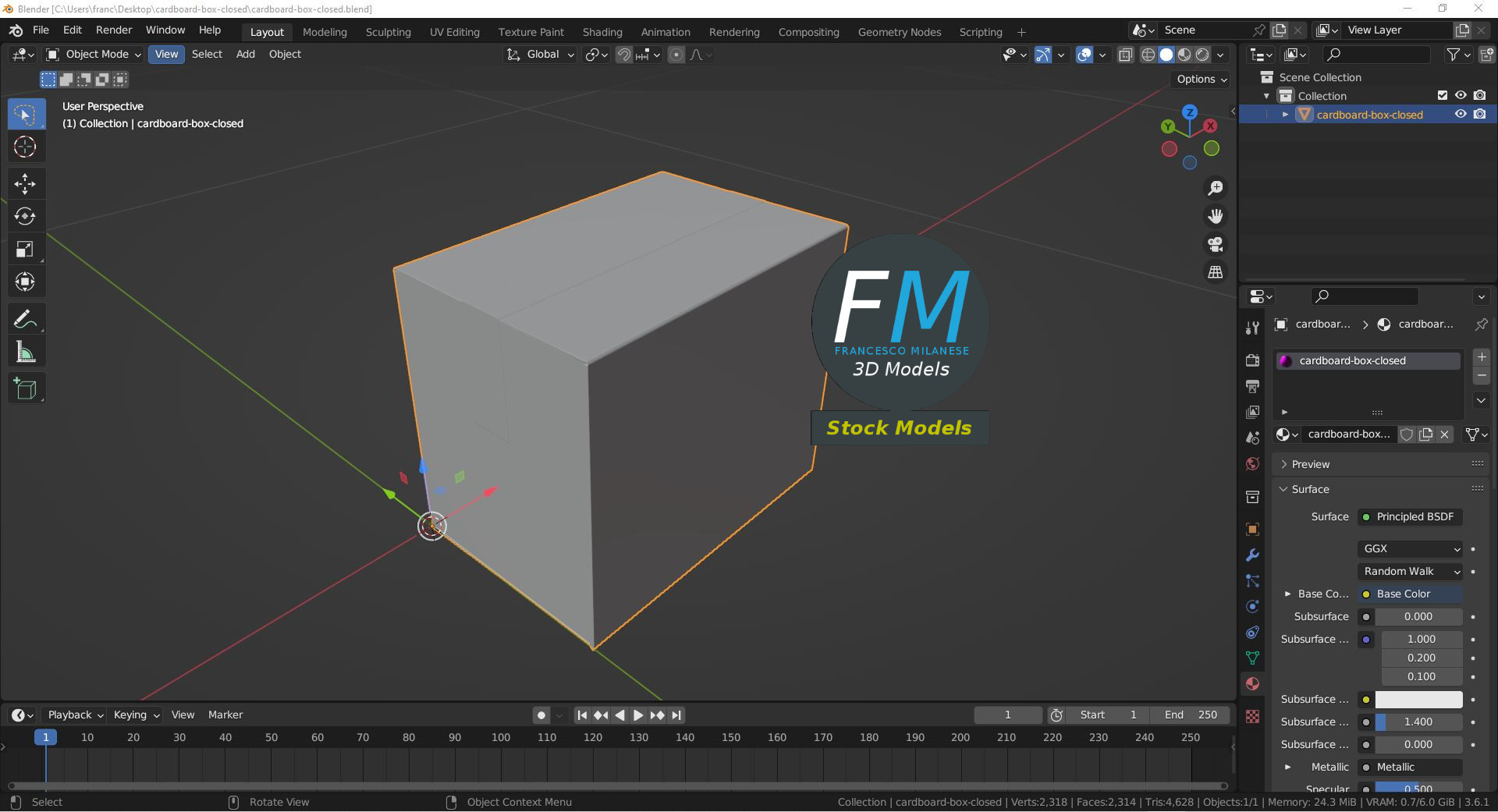 Sketchfab 3D preview: https://sketchfab.com/3d-models/cardboard-box-closed-d3ffa473700e4b2e8f6bf626b12a3153