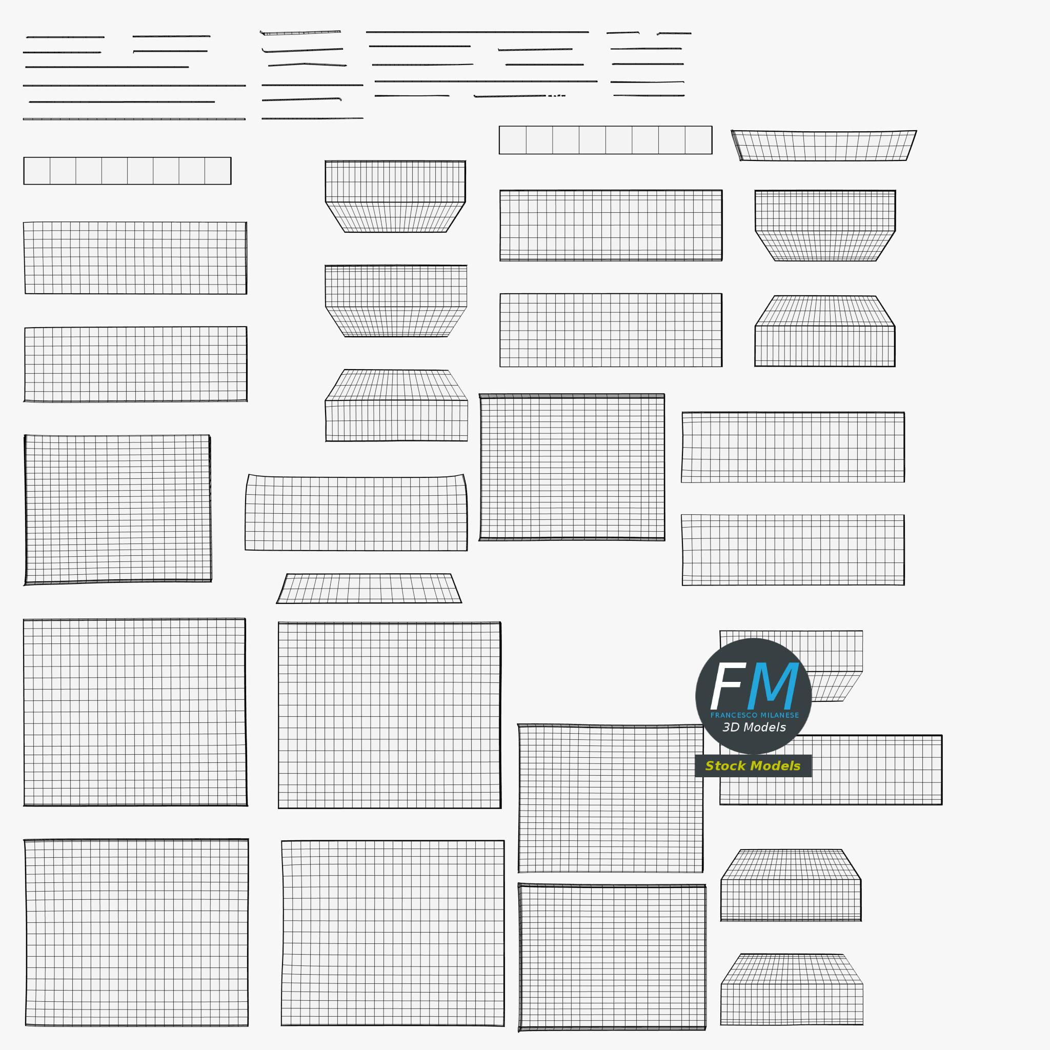 Easily customizable: UV unwrapped geometries, so you can create new Textures (or modify the existing ones) using the UV Layout maps provided in the package (as png with alpha).