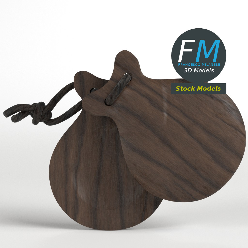 Castanets clackers 3D Model. Production-ready 3D Model, with PBR materials, textures, non overlapping UV Layout map provided in the package.