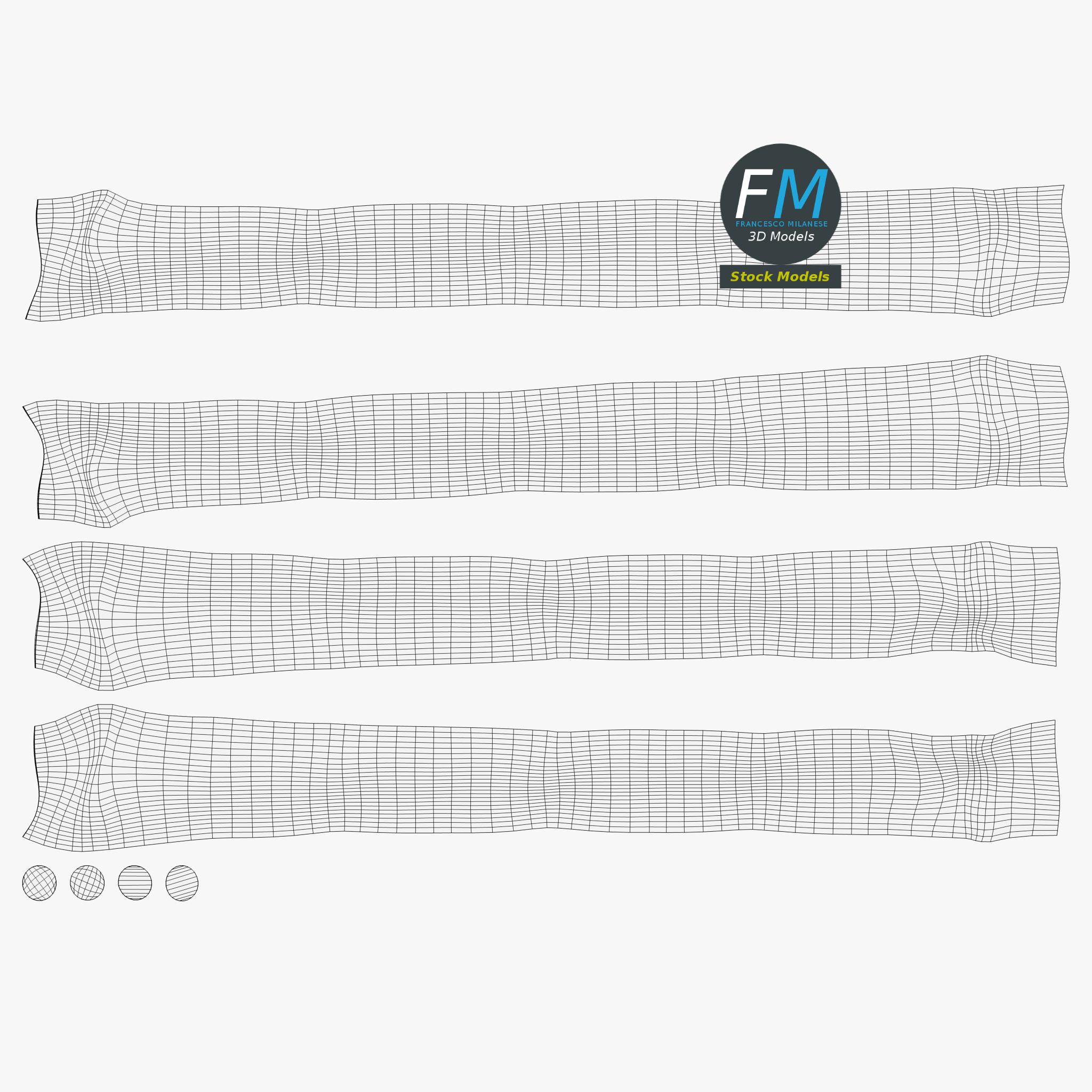 Easily customizable: UV unwrapped geometries, so you can create new Textures (or modify the existing ones) using the UV Layout maps provided in the package (as png with alpha).