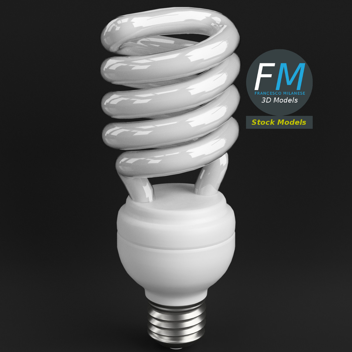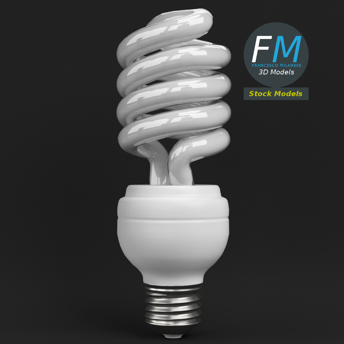 CFL spiral light bulb lamp 3D Model. Production-ready 3D Model, with PBR materials, textures, non overlapping UV Layout map provided in the package.