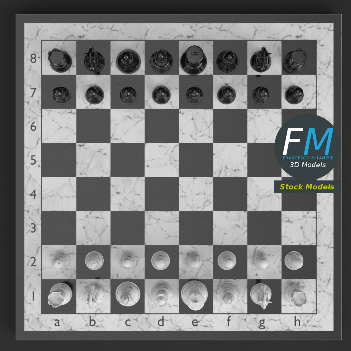 fm3d, game ready, vr, ar, chess, checkerboard, white, black, pieces, pawn, rook, king, queen, knight, bishop, toy, game