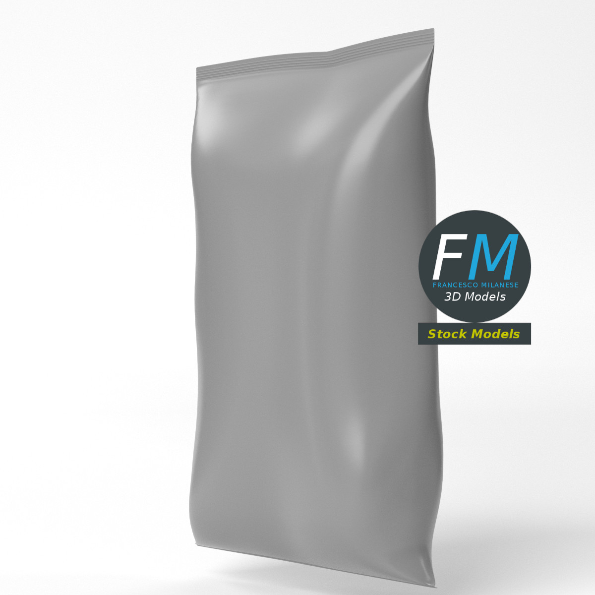 Potato chips or pop-corn food package template 3D Model, nr. 1 in my collection. Production-ready 3D Model, with PBR materials, textures, non overlapping UV Layout map provided in the package.