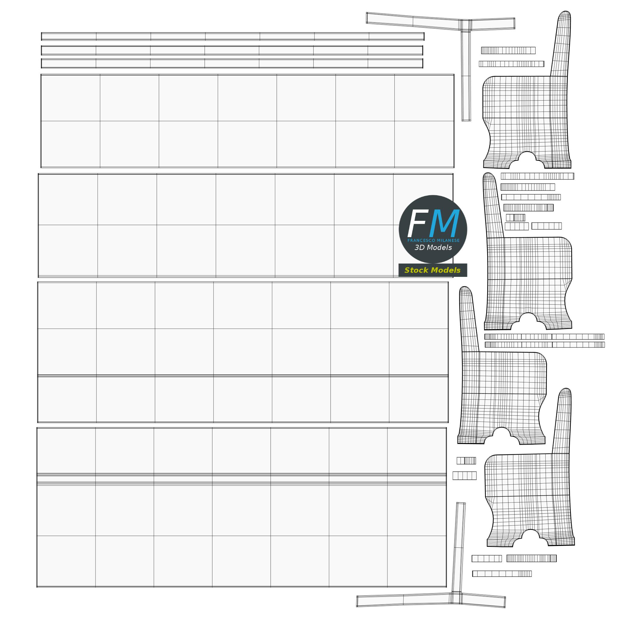 Easily customizable: UV unwrapped geometries, so you can create new Textures (or modify the existing ones) using the UV Layout maps provided in the package (as png with alpha).
