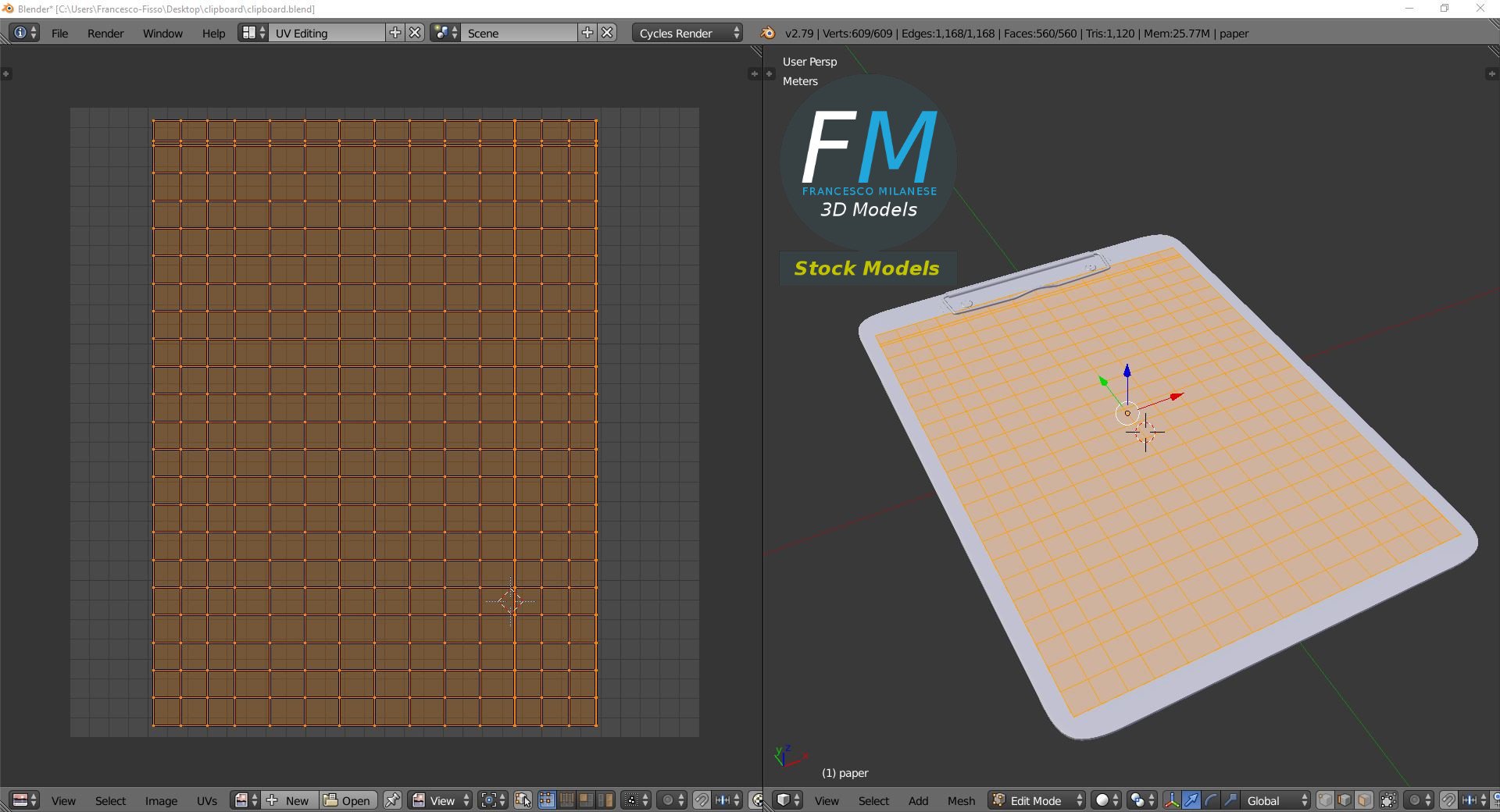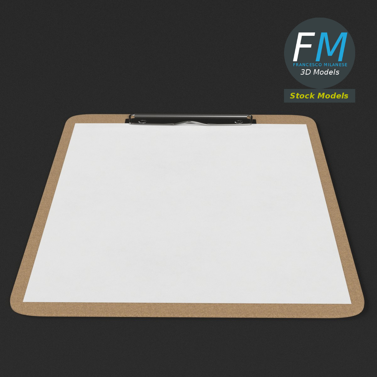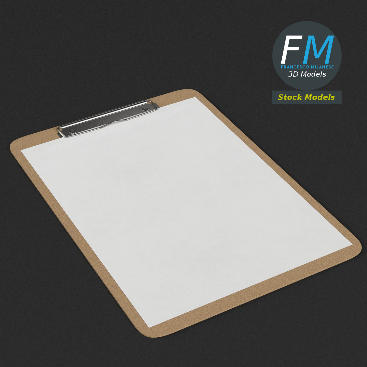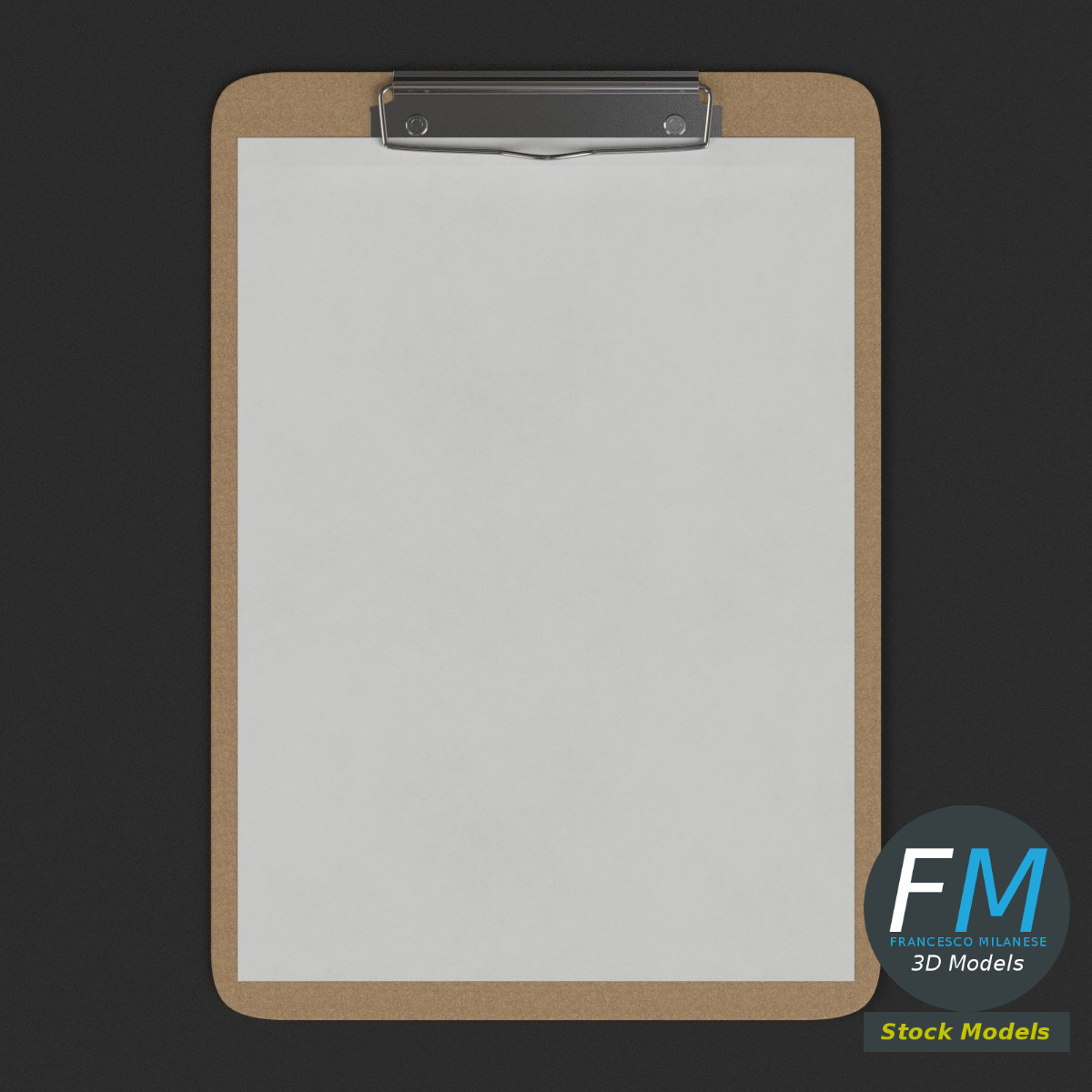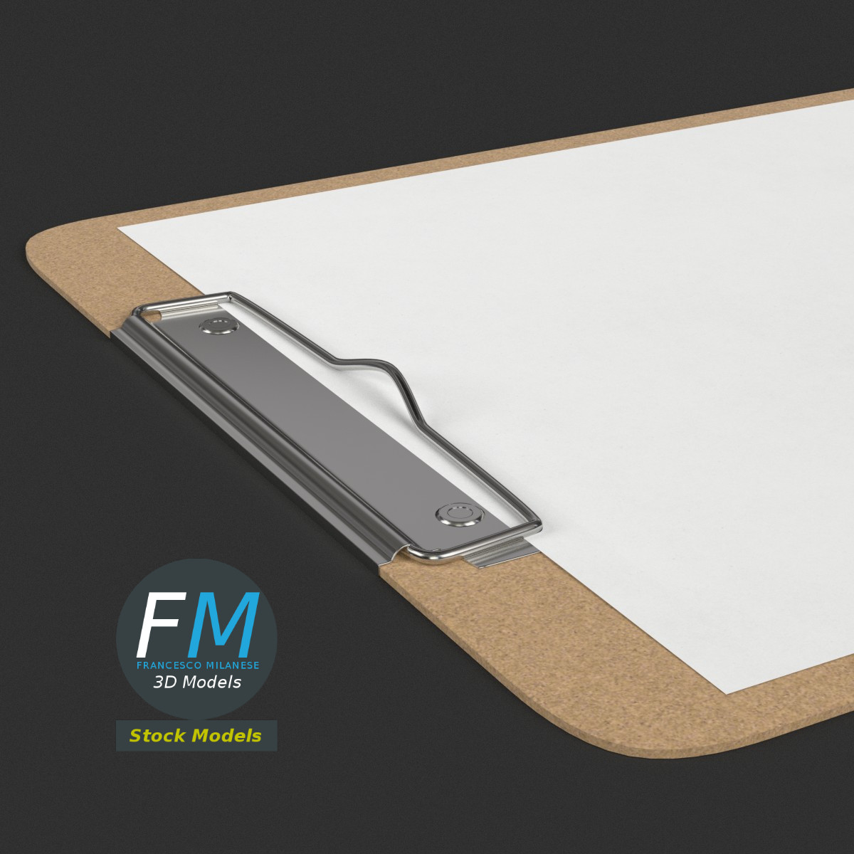 Clipboard 3D Model. 2 objects (paper, clipboard), each one with its own non overlapping UV Layout map, Material and PBR Textures set. Production-ready 3D Model, with PBR materials, textures, non overlapping UV Layout map provided in the package.