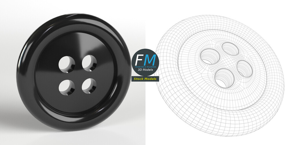 Clothing button (with four holes) 3D Model. Production-ready 3D Model, with PBR materials, textures, non overlapping UV Layout map provided in the package.