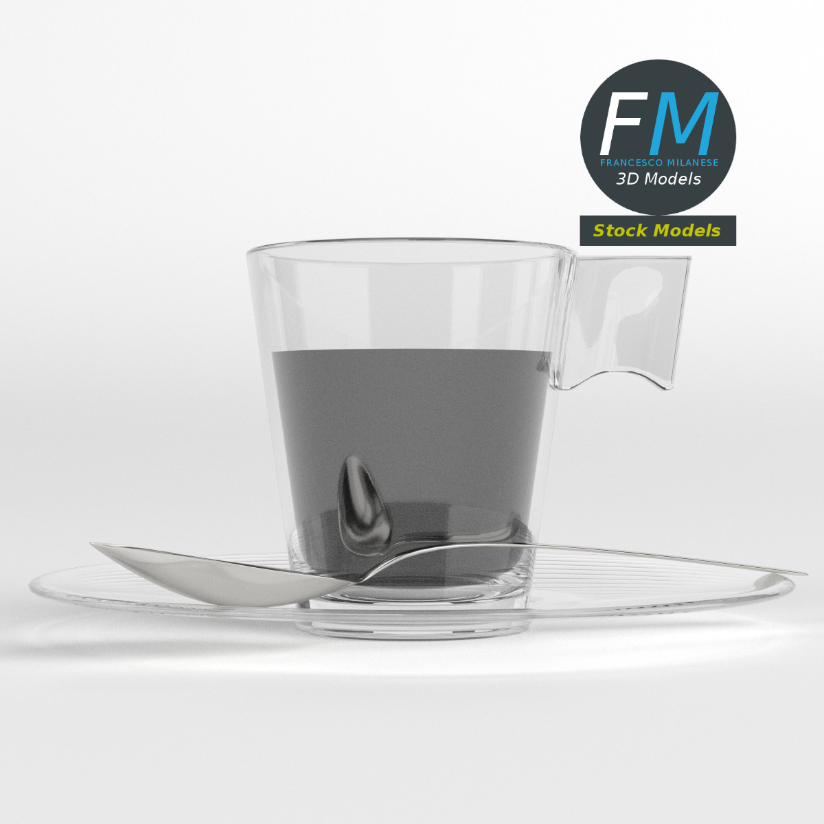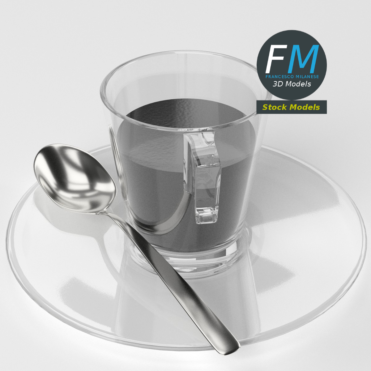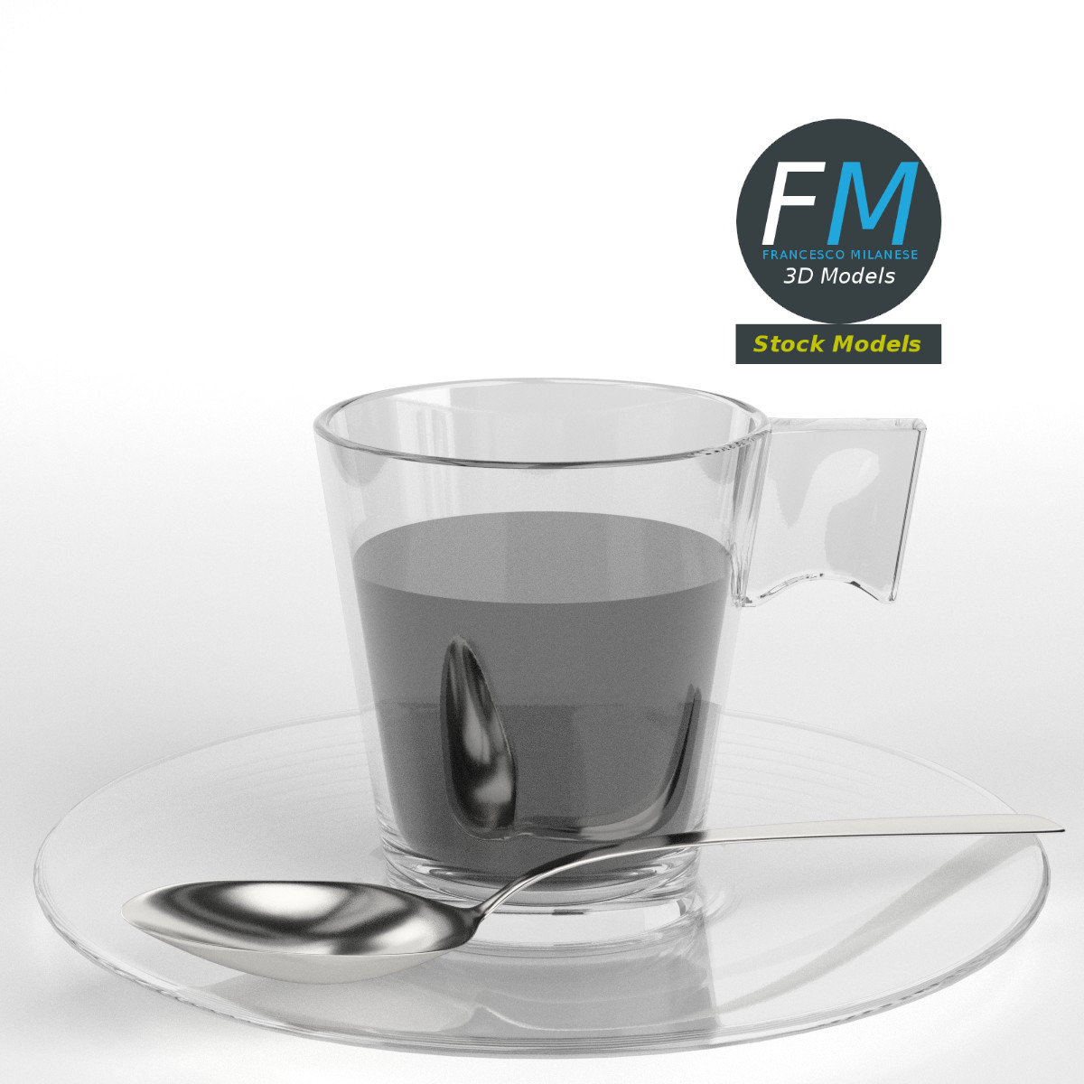 fm3d, game ready, vr, ar, coffee, glass, cup, mug, spoon, saucer, drink, beverage, espresso, italian, bar, club, restaurant