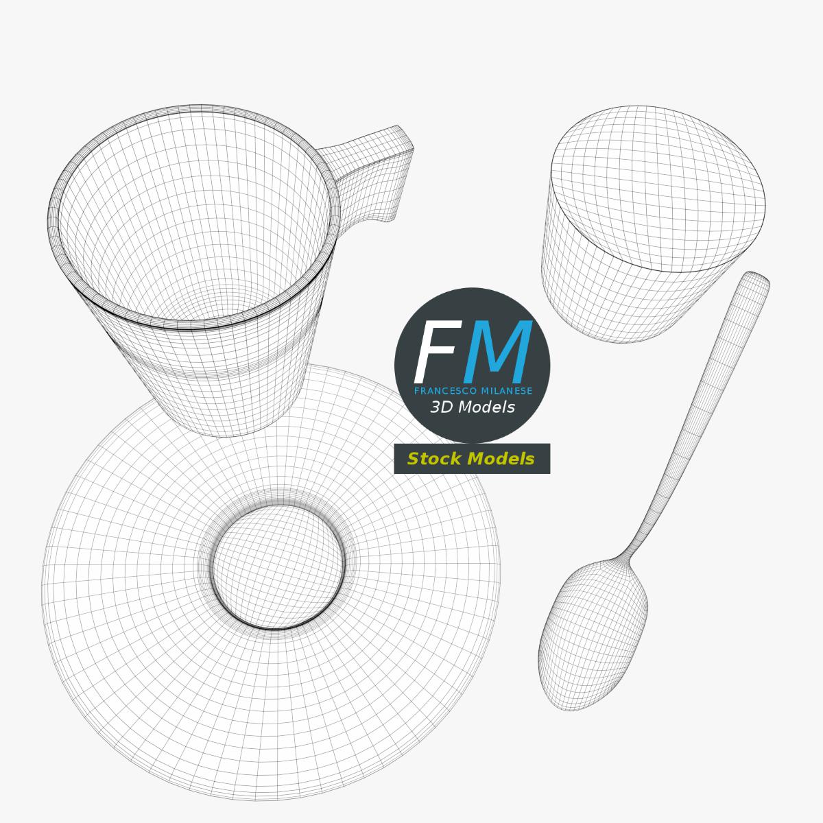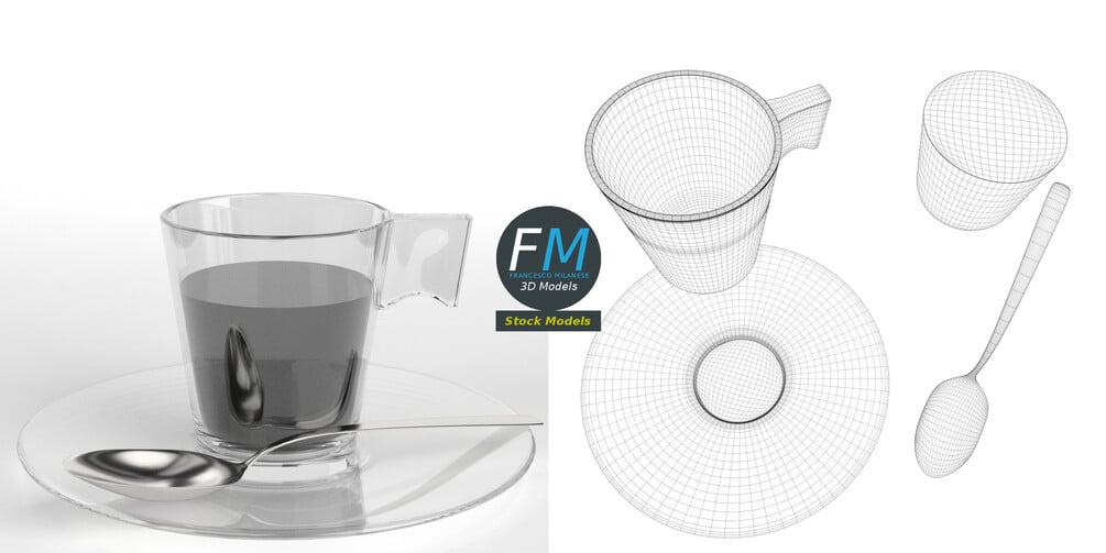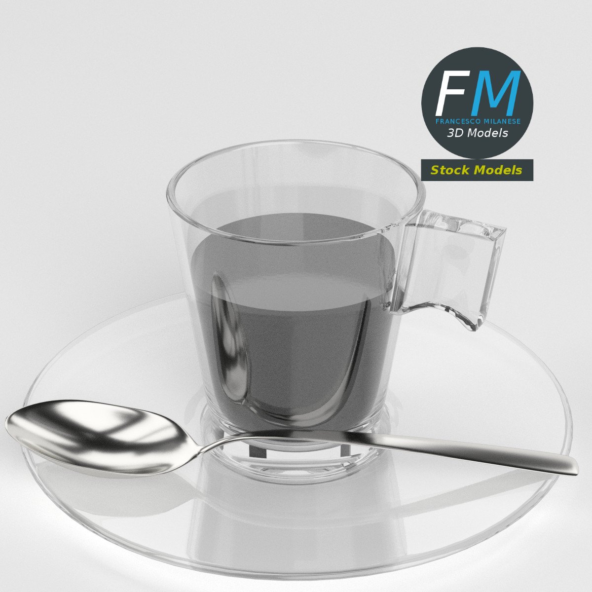 fm3d, game ready, vr, ar, coffee, glass, cup, mug, spoon, saucer, drink, beverage, espresso, italian, bar, club, restaurant