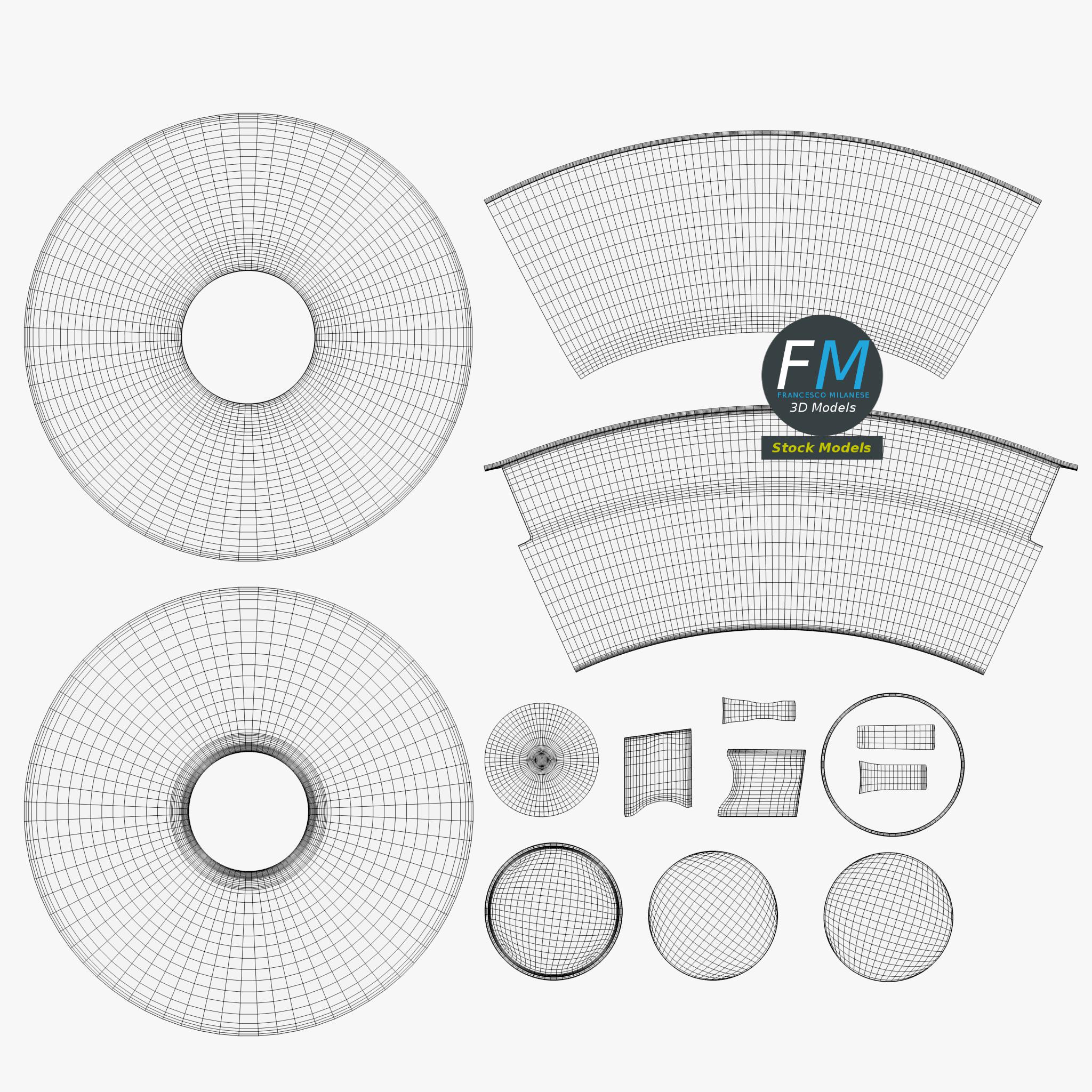 4 Objects (meshes), 2 PBR Materials, UV unwrapped (non overlapping UV Layout map provided in the package); UV-mapped Textures.