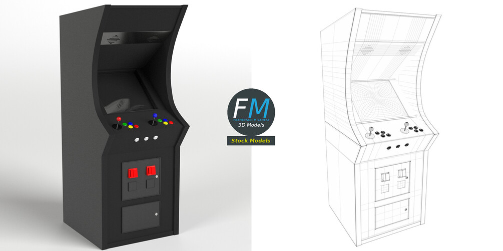 Coin-op arcade game machine base mesh 3D Model; 3 objects (glass, game plane, case), each one with its own non overlapping UV Layout map, Material and PBR Textures set. Production-ready 3D Model, with PBR materials, textures, and non overlapping UV Layout map provided in the package.