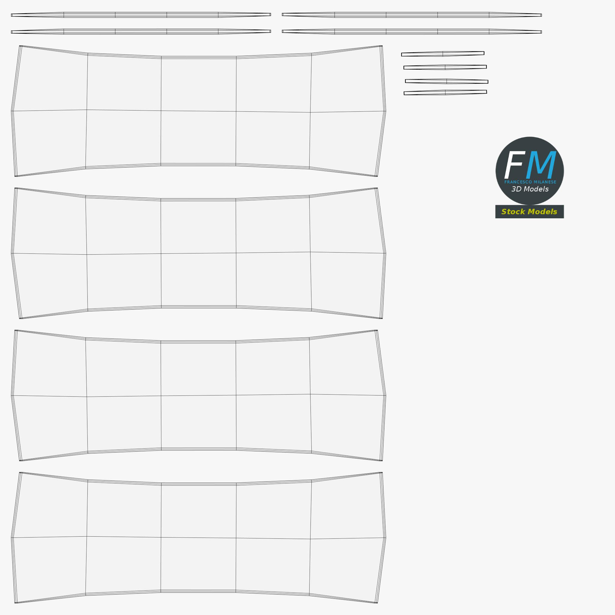 Easily customizable: UV unwrapped geometries, so you can create new Textures (or modify the existing ones) using the UV Layout maps provided in the package (as png with alpha).