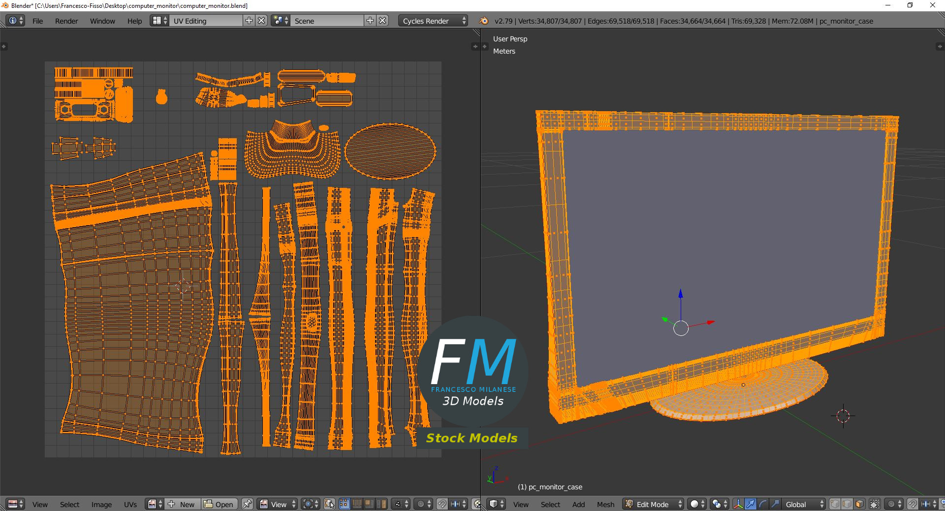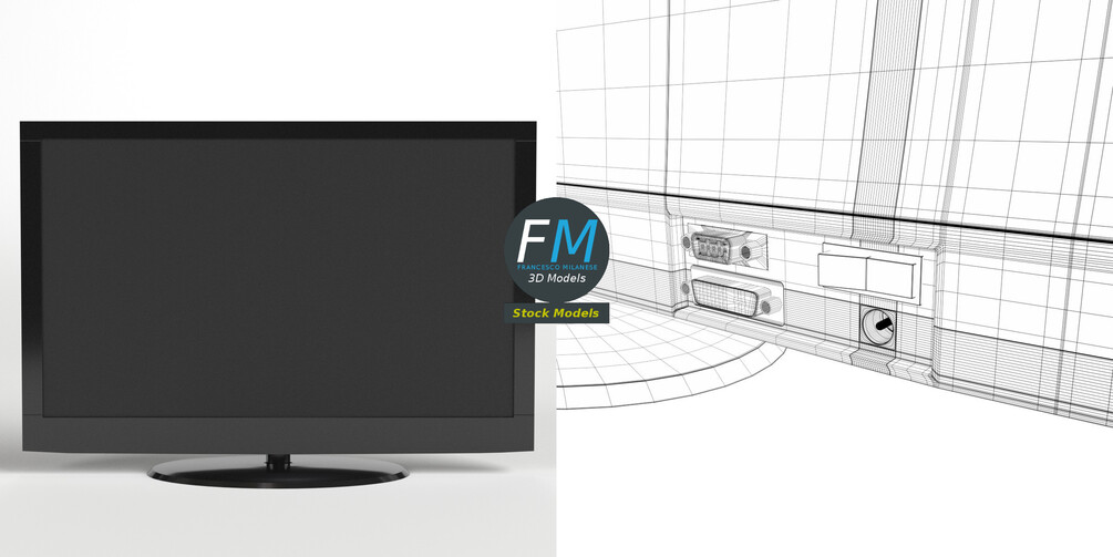 A flat, LED computer display monitor 3D Model; 2 objects (case, display), parented, each one with its own non overlapping UV Layout map, Material and PBR Textures set. Production-ready 3D Model, with PBR materials, textures, and non overlapping UV Layout map provided in the package.