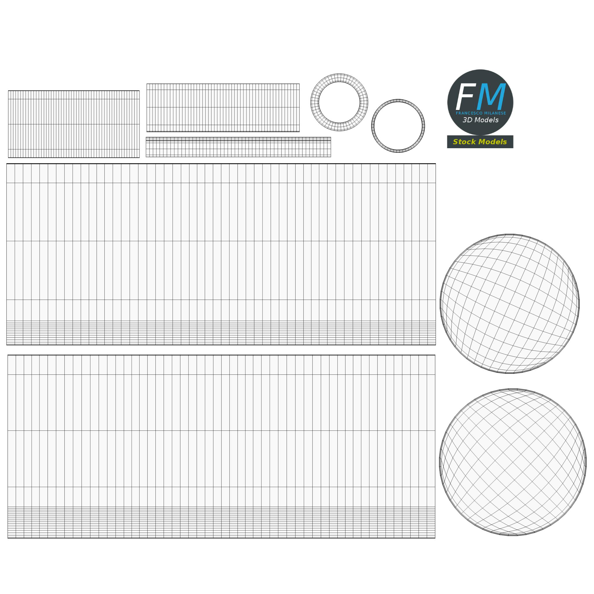 Easily customizable: UV unwrapped geometries, so you can create new Textures (or modify the existing ones) using the UV Layout maps provided in the package (as png with alpha).