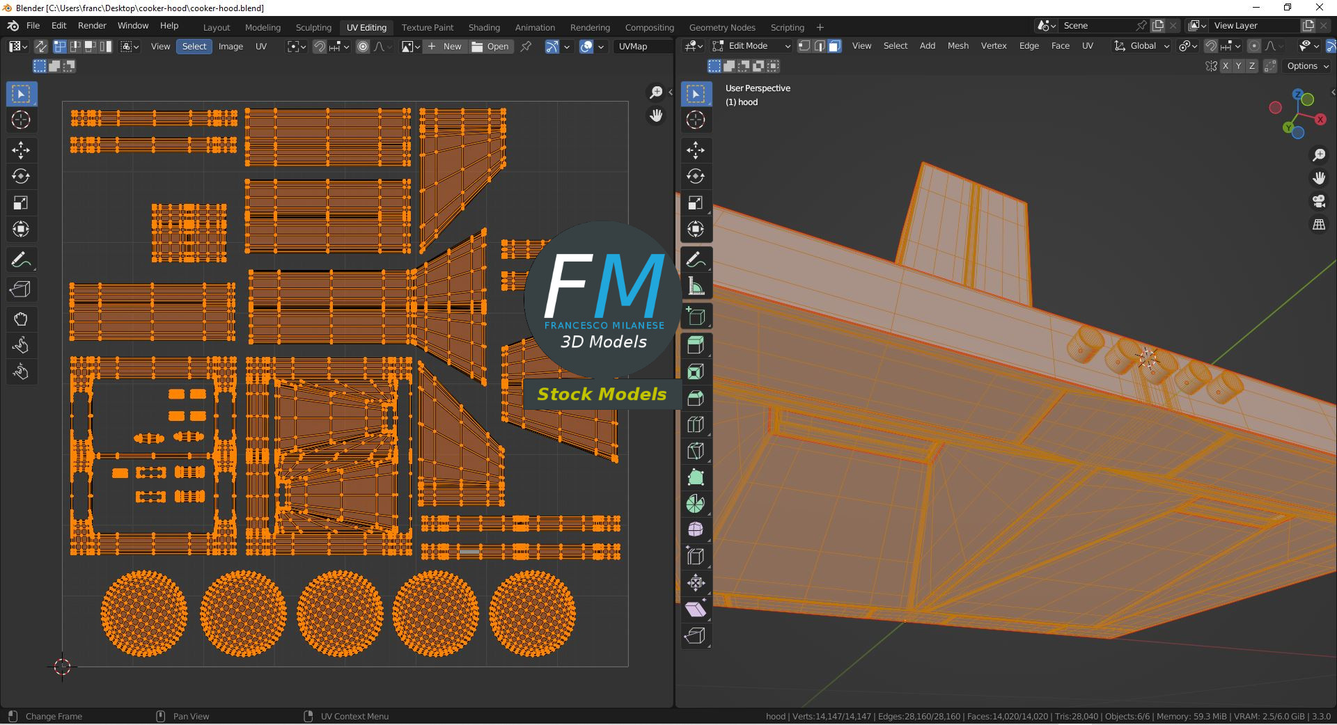Easily customizable: UV unwrapped geometries, so you can create new Textures (or modify the existing ones) using the UV Layout maps provided in the package (as png with alpha).