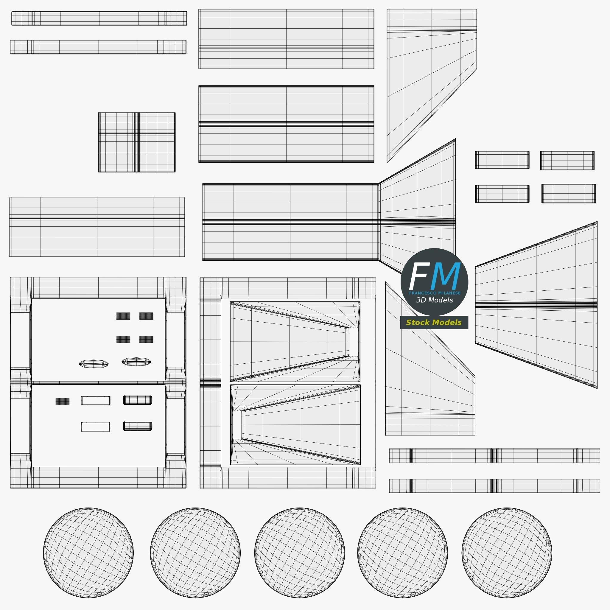 6 Objects (meshes), 2 PBR Materials, UV unwrapped (non overlapping UV Layout map provided in the package); UV-mapped Textures.