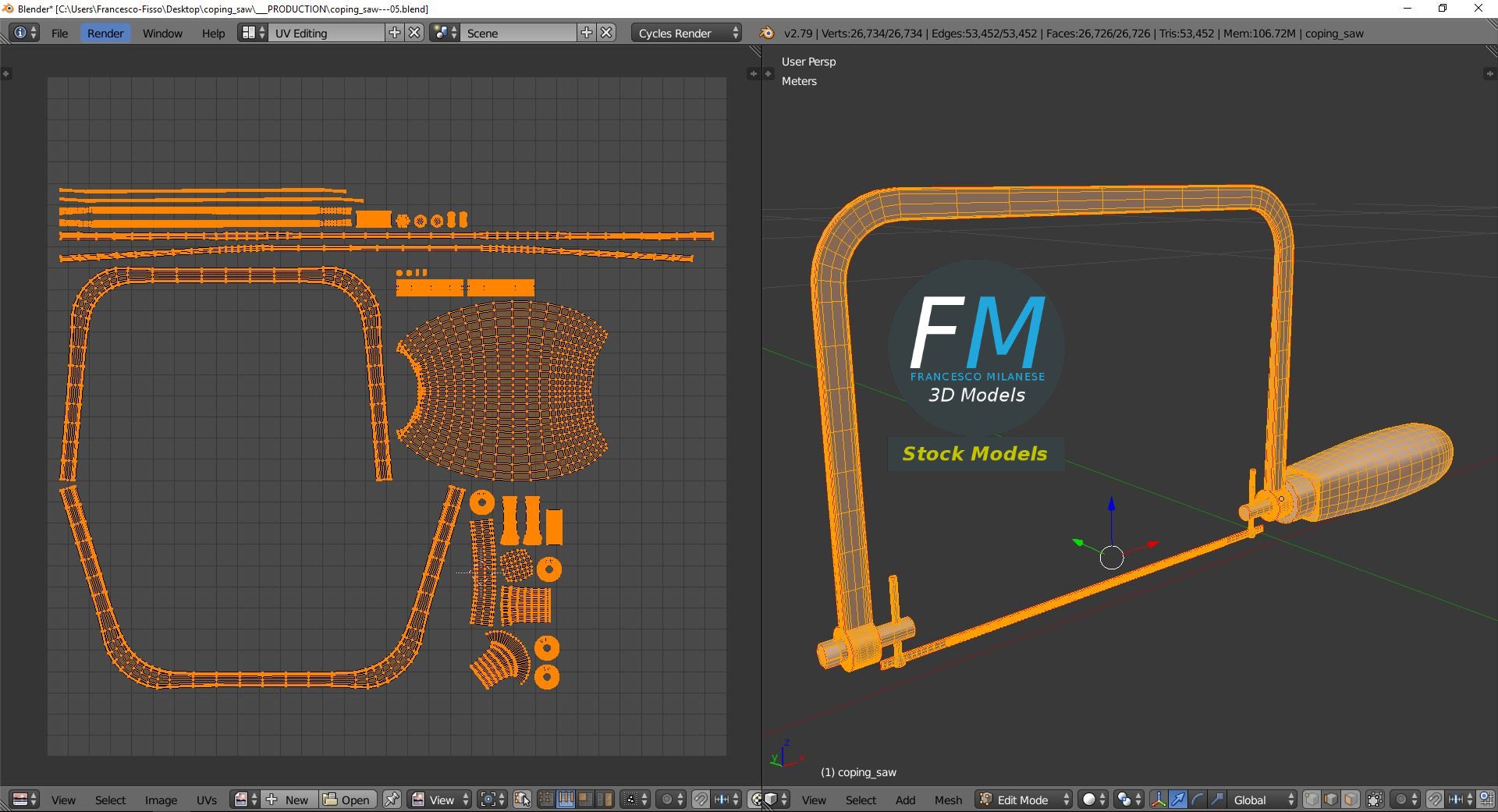 Coping saw 3D Model. Production-ready 3D Model, with PBR materials, textures, non overlapping UV Layout map provided in the package.