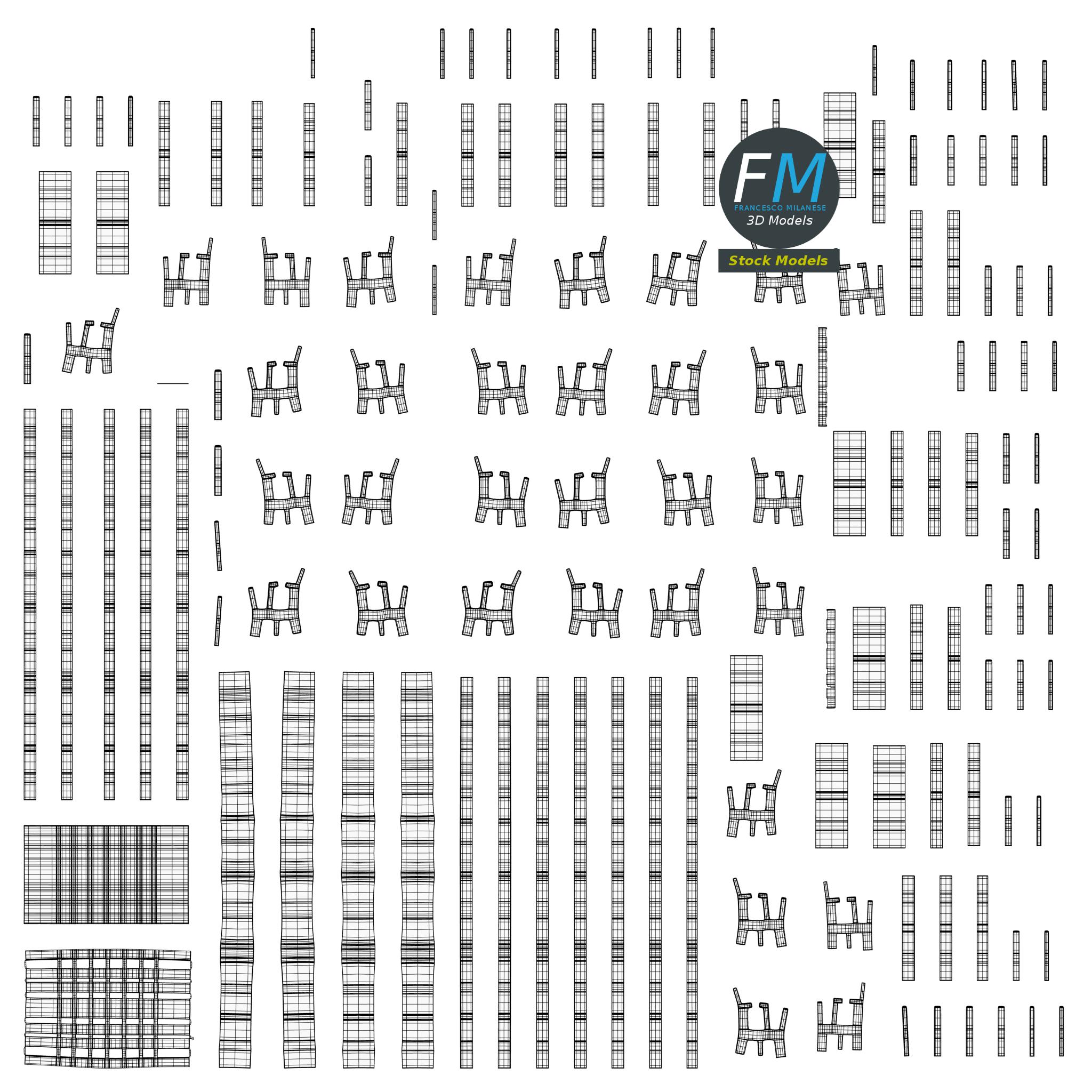 Easily customizable: UV unwrapped geometries, so you can create new Textures (or modify the existing ones) using the UV Layout maps provided in the package (as png with alpha).