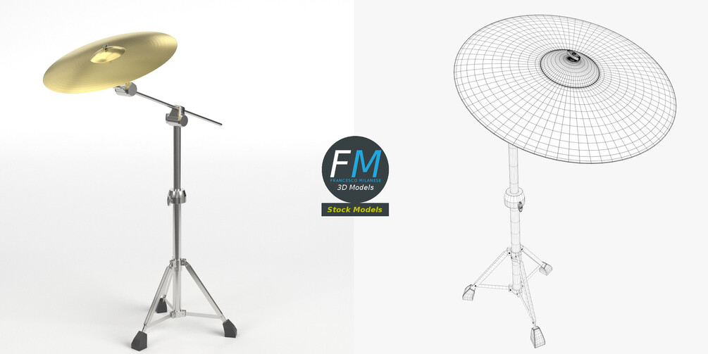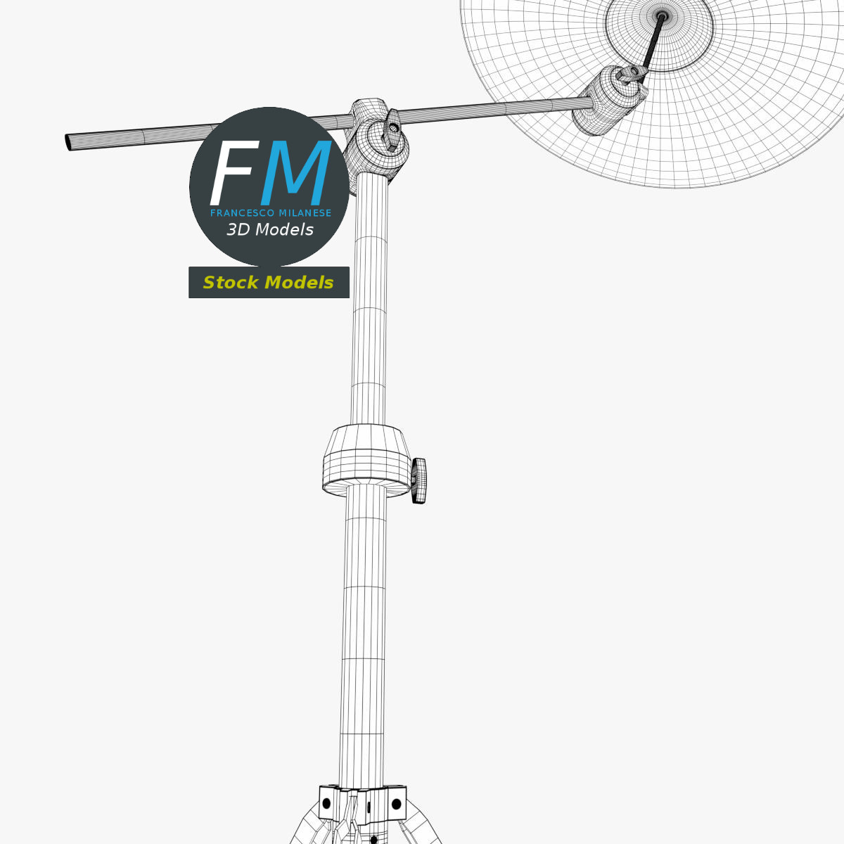 Crash cymbal on boom stick 3D Model (single object, to be used as it is). Production-ready 3D Model, with PBR materials, textures, non overlapping UV Layout map provided in the package.