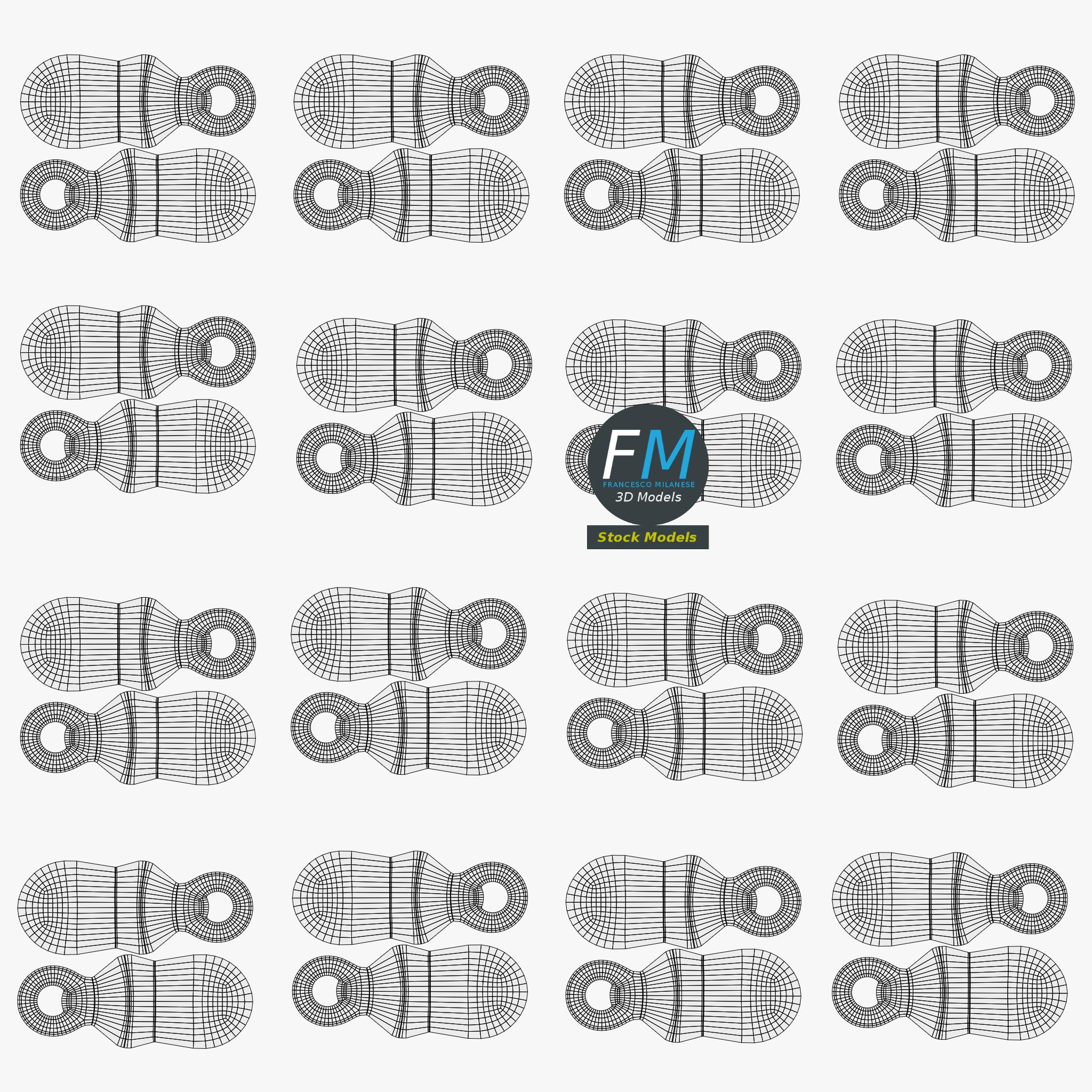Easily customizable: UV unwrapped geometries; UV Layout maps provided in the package as png with alpha images.