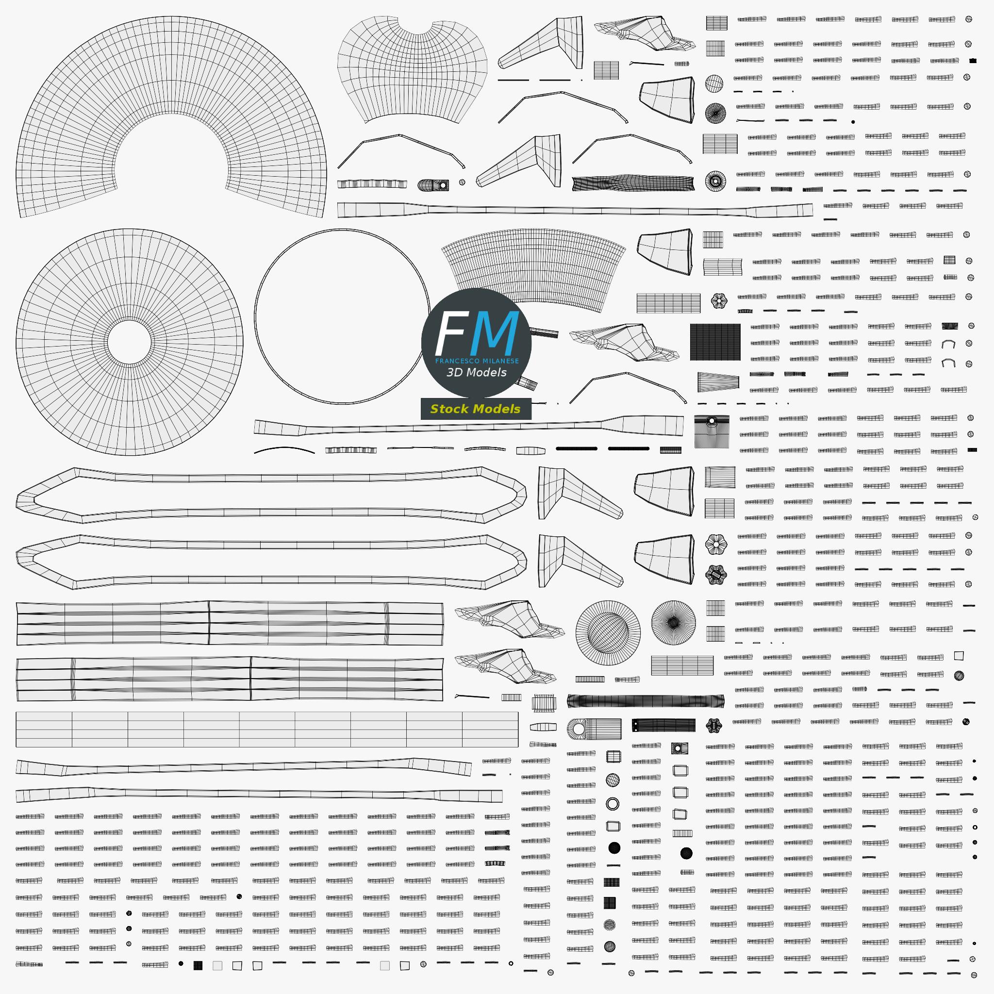 Easily customizable: UV unwrapped geometries; UV Layout maps provided in the package as png with alpha images.