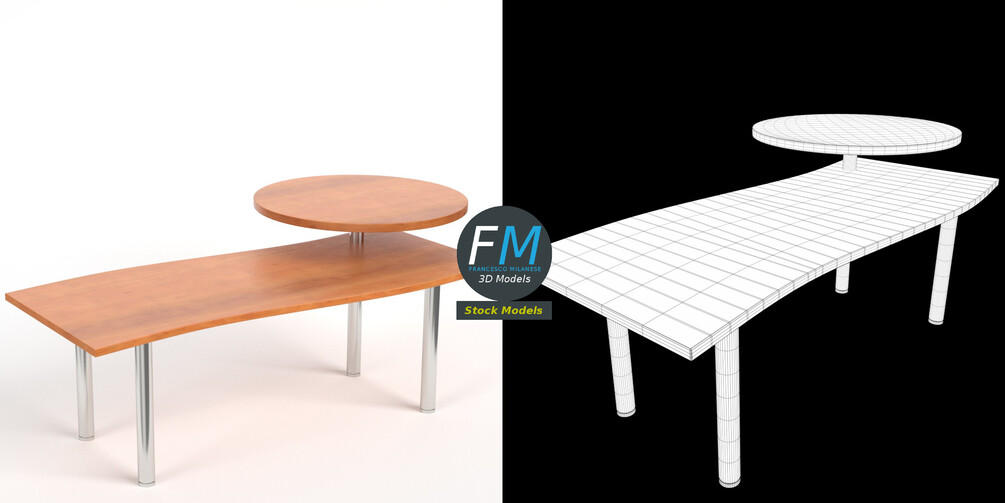 Desk with circular shelf 3D Model. Production-ready 3D Model, with PBR materials, textures, non overlapping UV Layout map provided in the package.