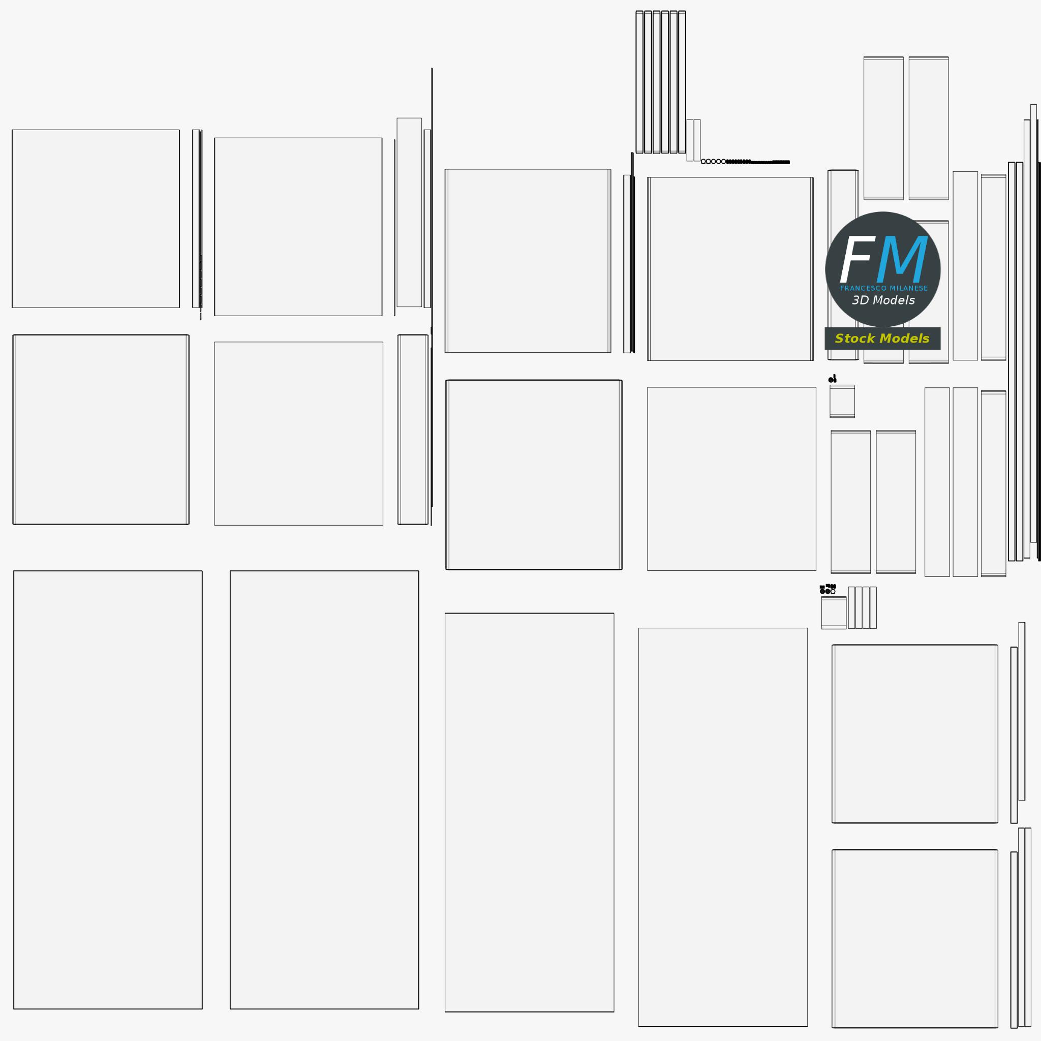Easily customizable: UV unwrapped geometries, so you can create new Textures (or modify the existing ones) using the UV Layout maps provided in the package (as png with alpha).