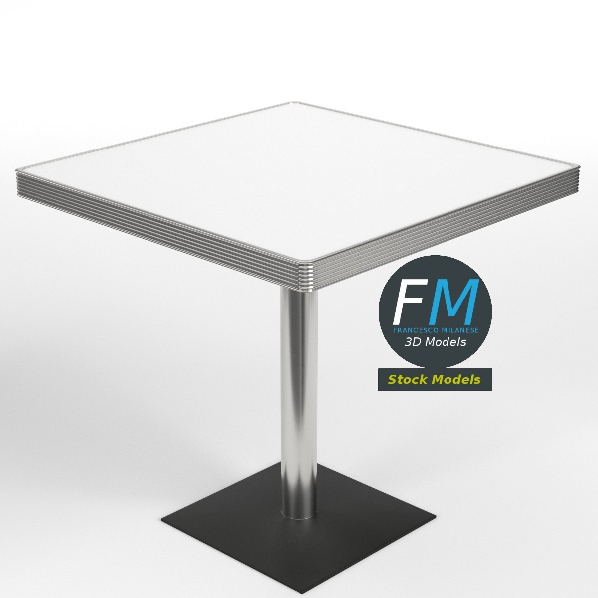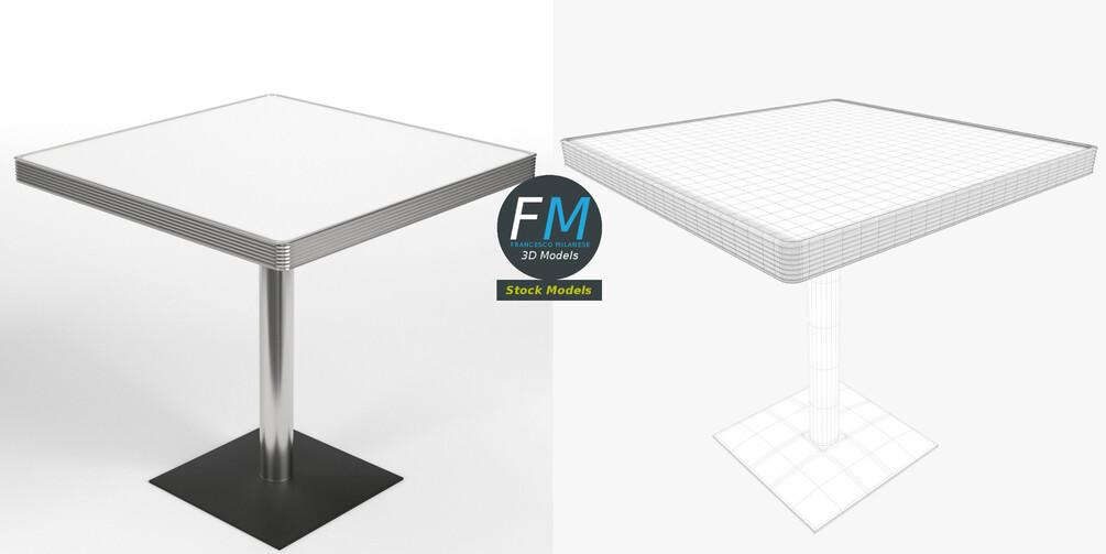 Diner booth table 3D Model, nr. 1 in my collection (square version). Production-ready 3D Model, with PBR materials, textures, non overlapping UV Layout map provided in the package.