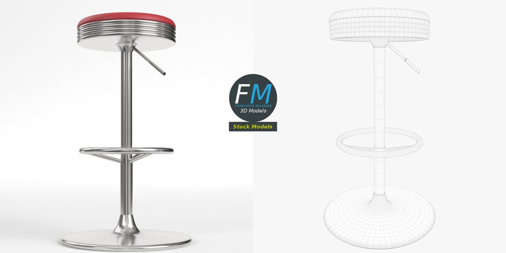 Adjustable diner stool 3D Model, nr. 1 in my collection. 3 individual objects (lever, top, base; so, you can easily adjust its height), sharing the same non overlapping UV Layout map, Material and PBR Textures set. Production-ready 3D Model, with PBR materials, textures, non overlapping UV Layout map provided in the package.