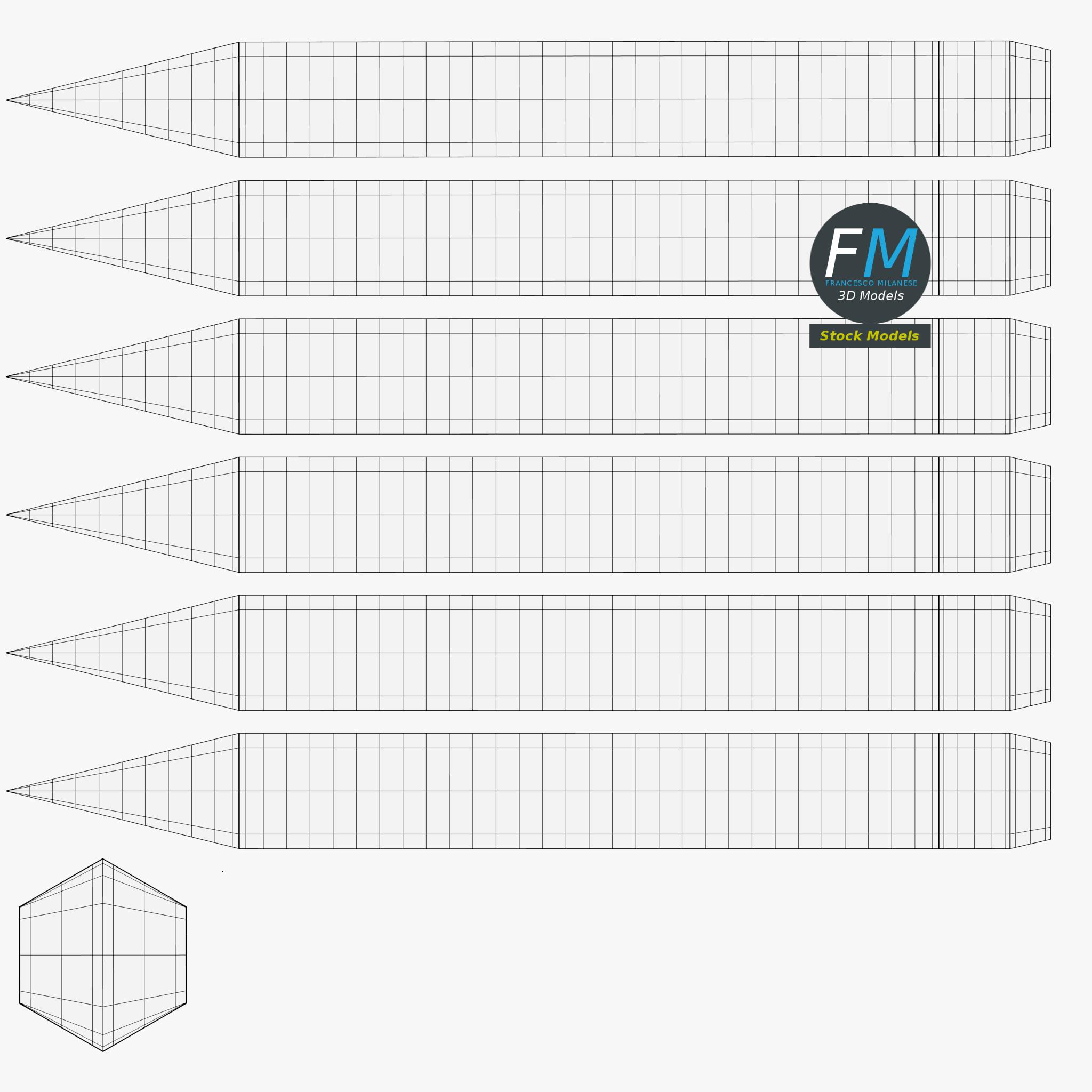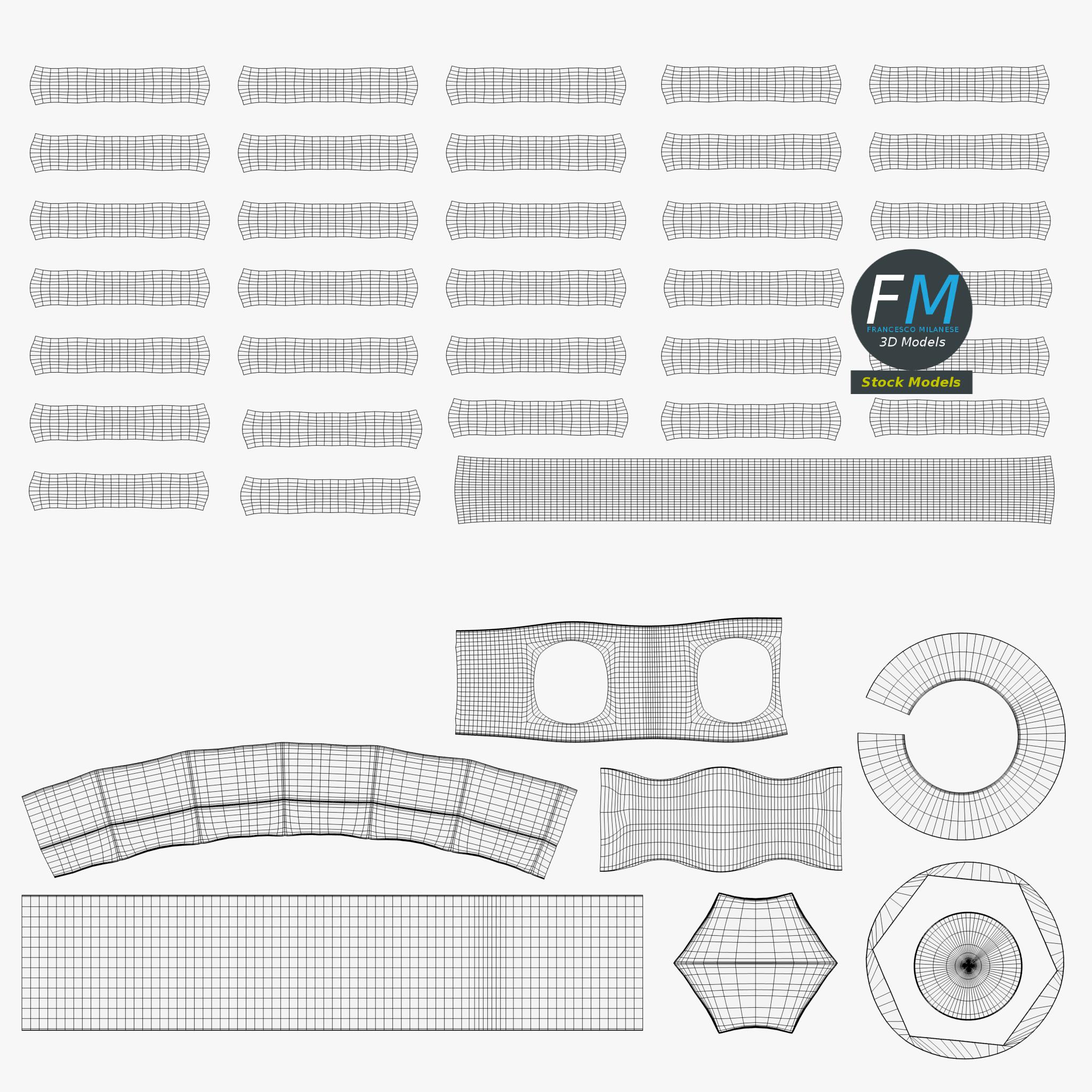 Easily customizable: UV unwrapped geometries, so you can create new Textures (or modify the existing ones) using the UV Layout maps provided in the package (as png with alpha).