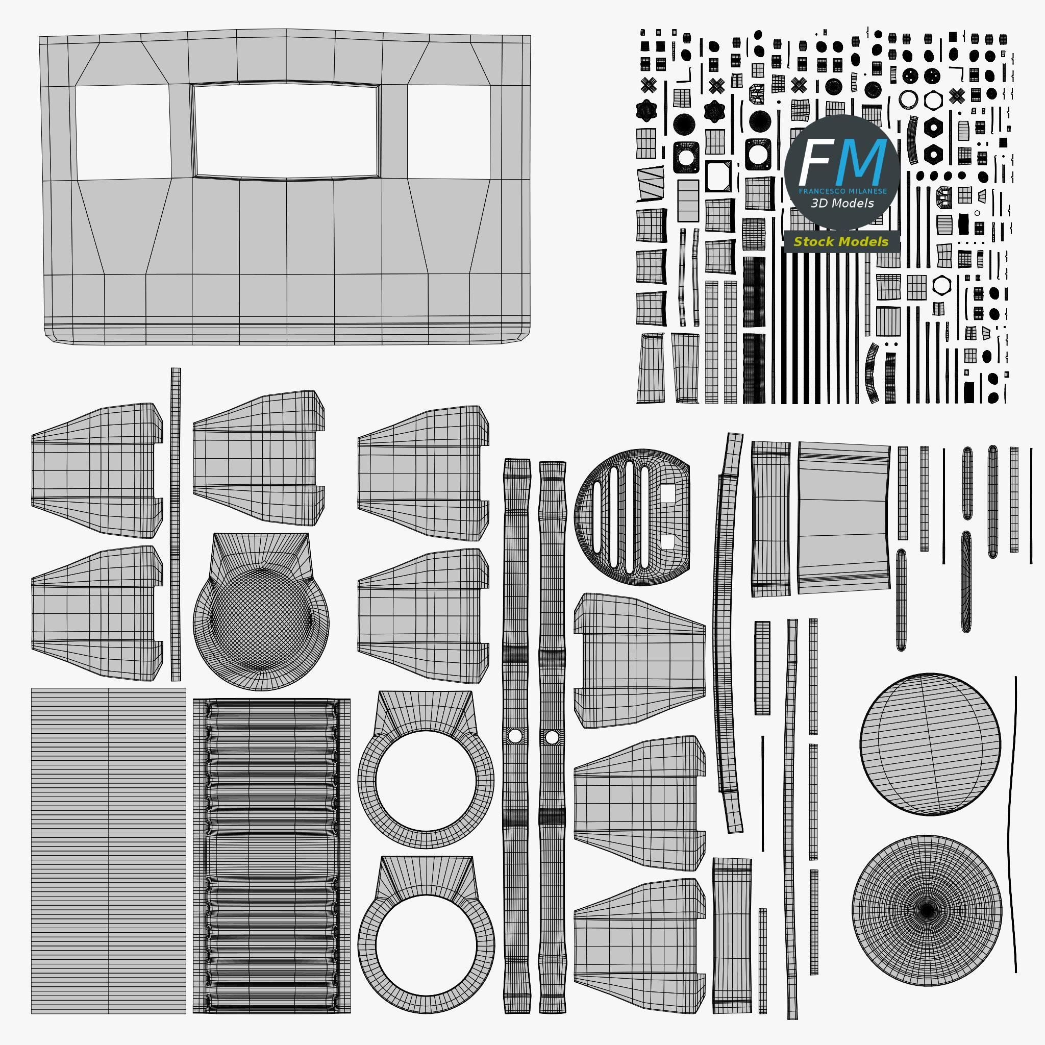 7 Objects (meshes), 2 PBR Materials, UV unwrapped (non overlapping UV Layout map provided in the package); UV-mapped Textures.
