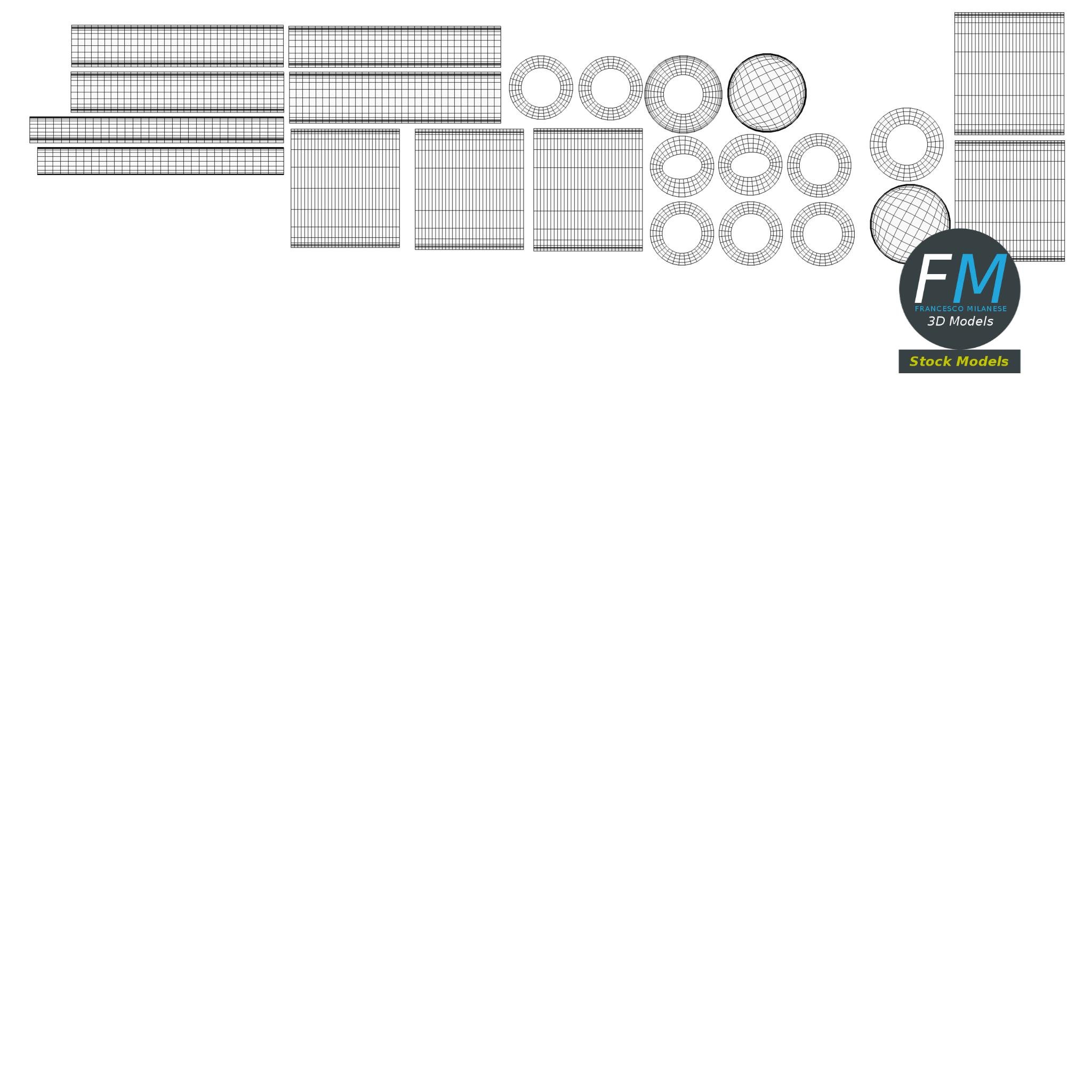 Easily customizable: UV unwrapped geometries, so you can create new Textures (or modify the existing ones) using the UV Layout maps provided in the package (as png with alpha).