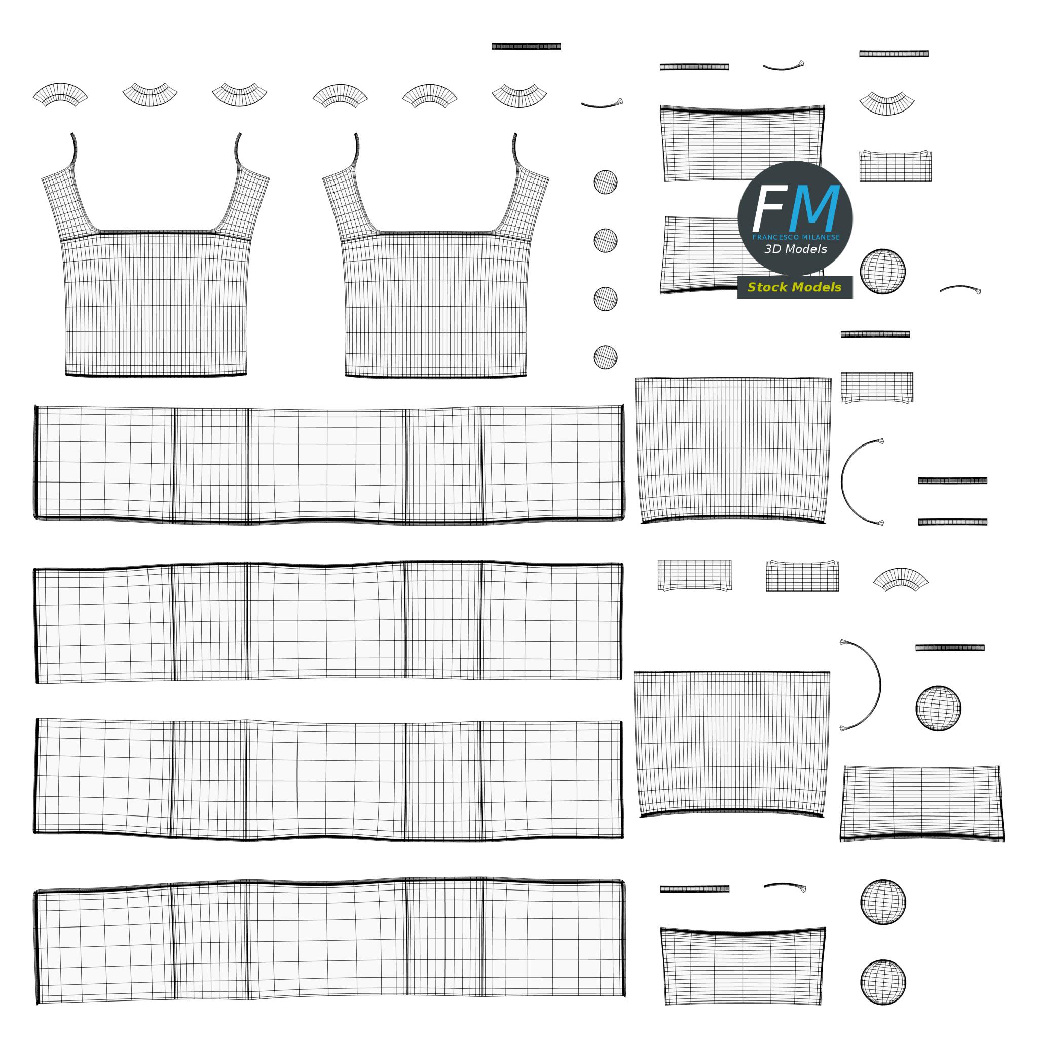Easily customizable: UV unwrapped geometries, so you can create new Textures (or modify the existing ones) using the UV Layout maps provided in the package (as png with alpha).