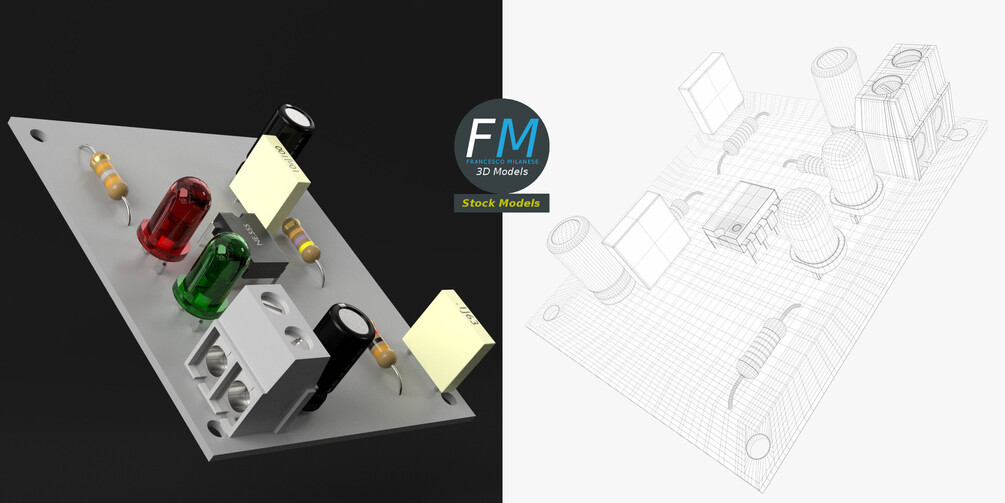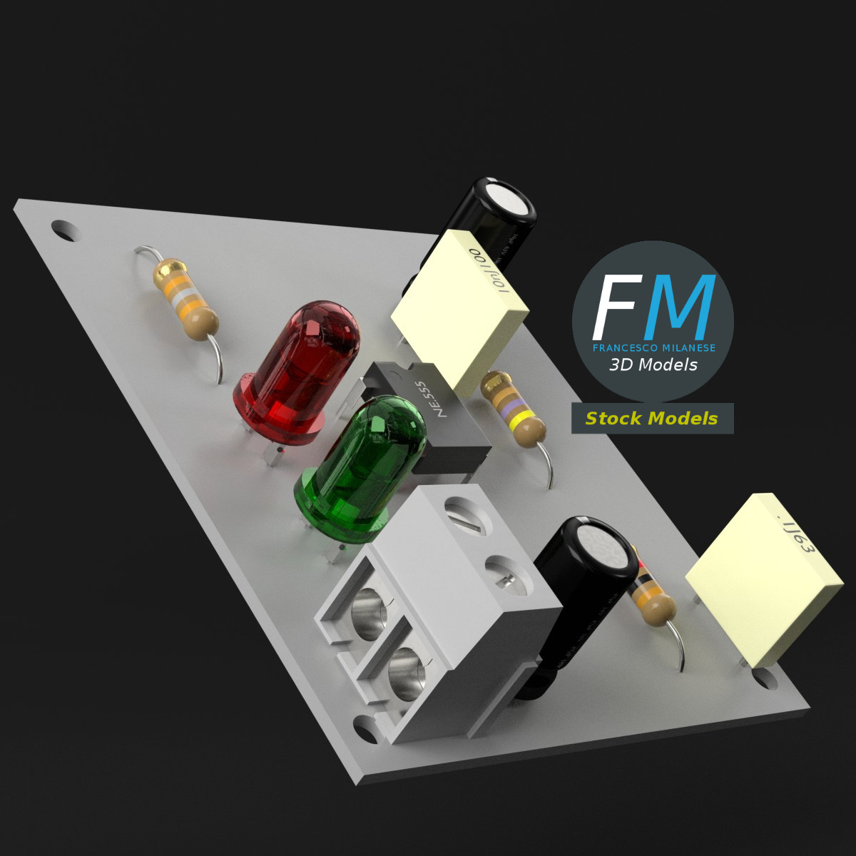 Electronic circuit 3D Model, nr. 1 in my collection (it is a 2 LED blinker, actually). Production-ready 3D Model, with PBR materials, textures, non overlapping UV Layout map provided in the package.