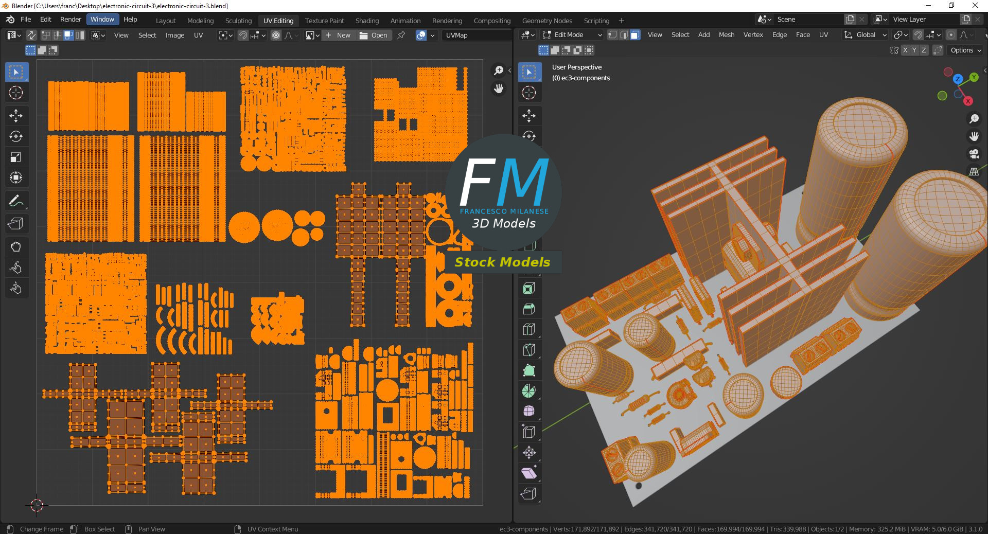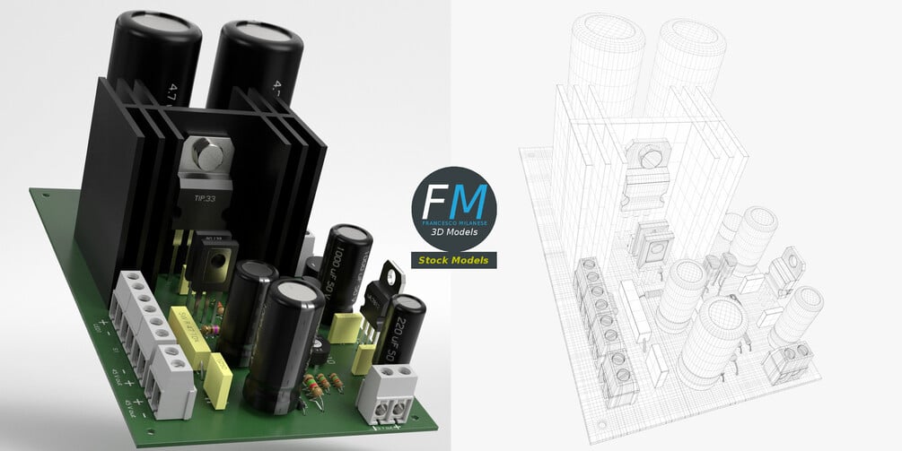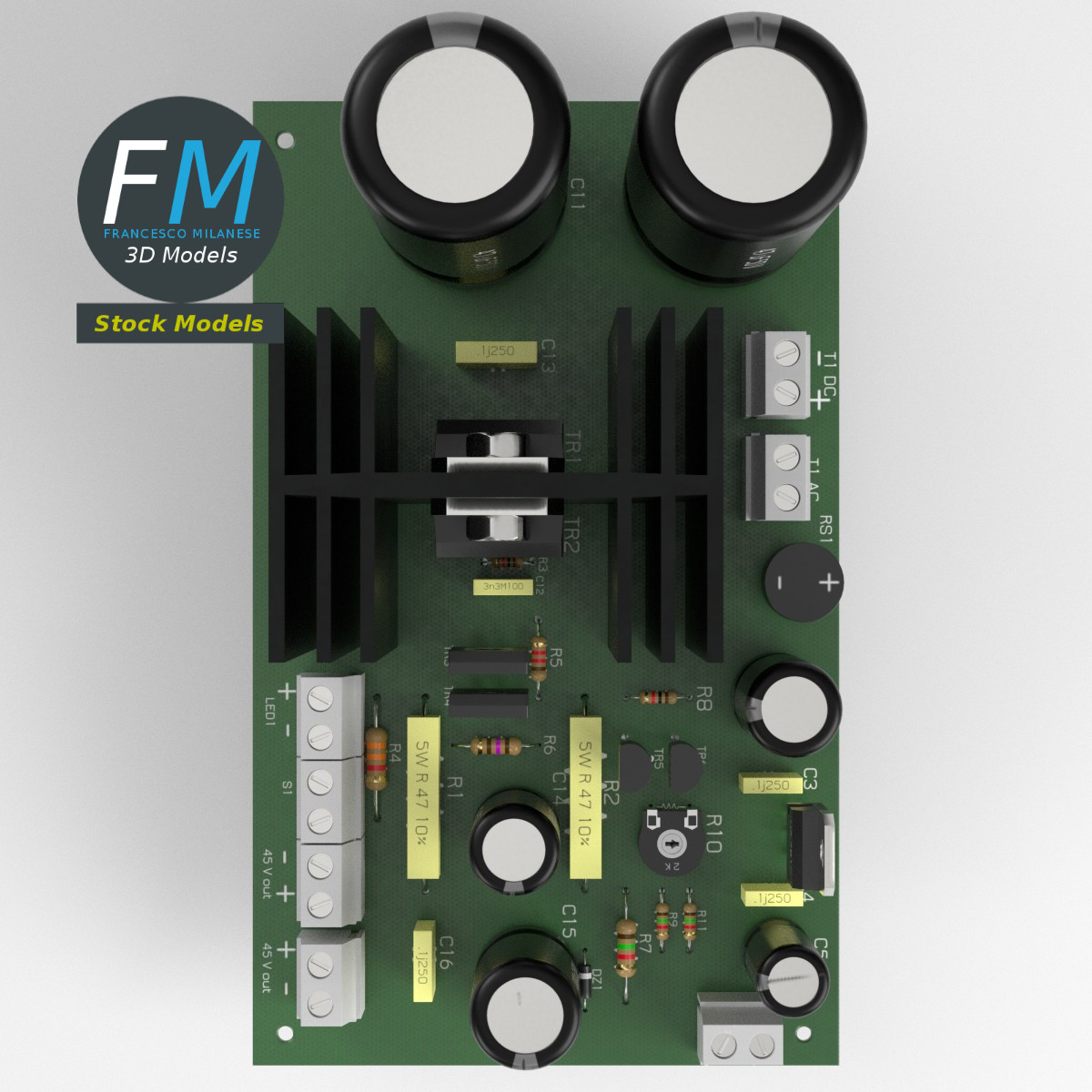 Electronic circuit 3D Model, nr. 3 in my collection. 2 individual objects (board, components), each one with its own non overlapping UV Layout map, Material and PBR Textures set. Production-ready 3D Model, with PBR materials, textures, non overlapping UV Layout map provided in the package.