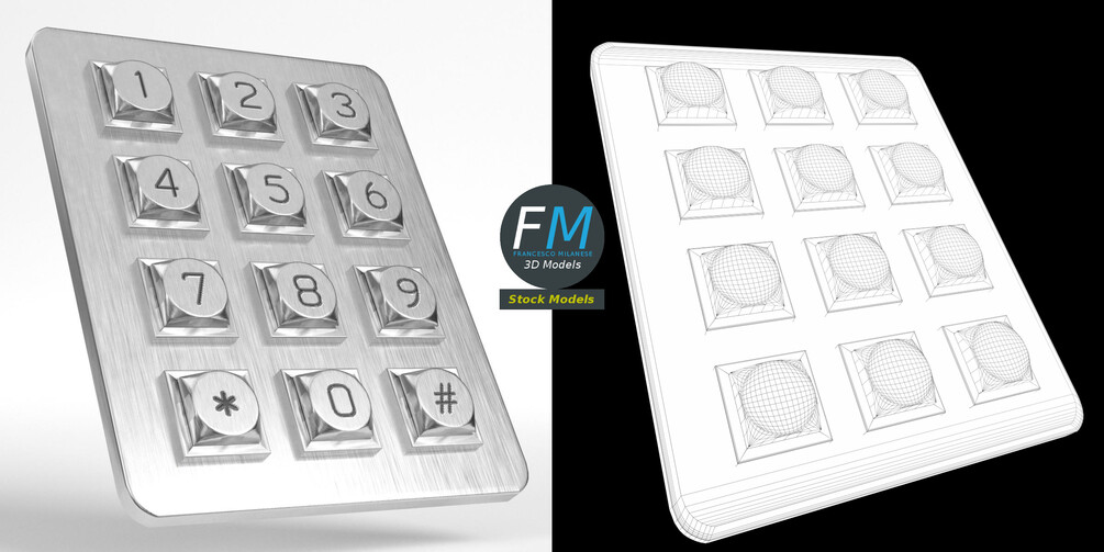 Electronic keypad 3D Model, nr. 2 in my collection. 13 individual objects (base, 12 keys), sharing the same non overlapping UV Layout map, Material and PBR Textures set. Production-ready 3D Model, with PBR materials, textures, non overlapping UV Layout map provided in the package.